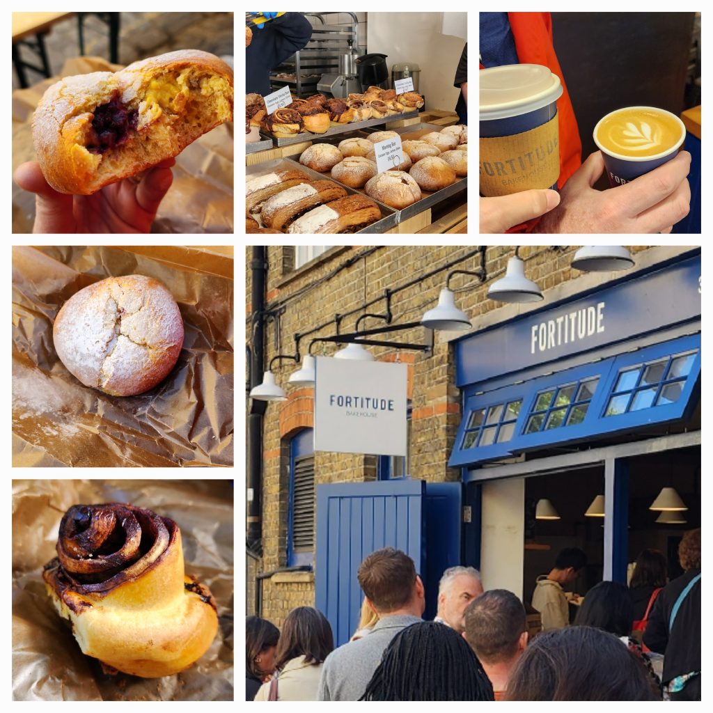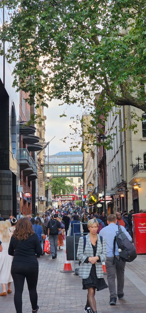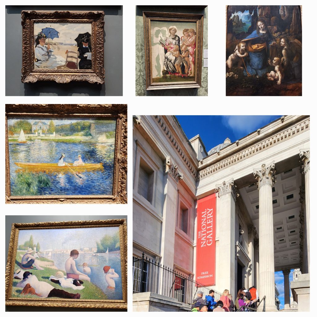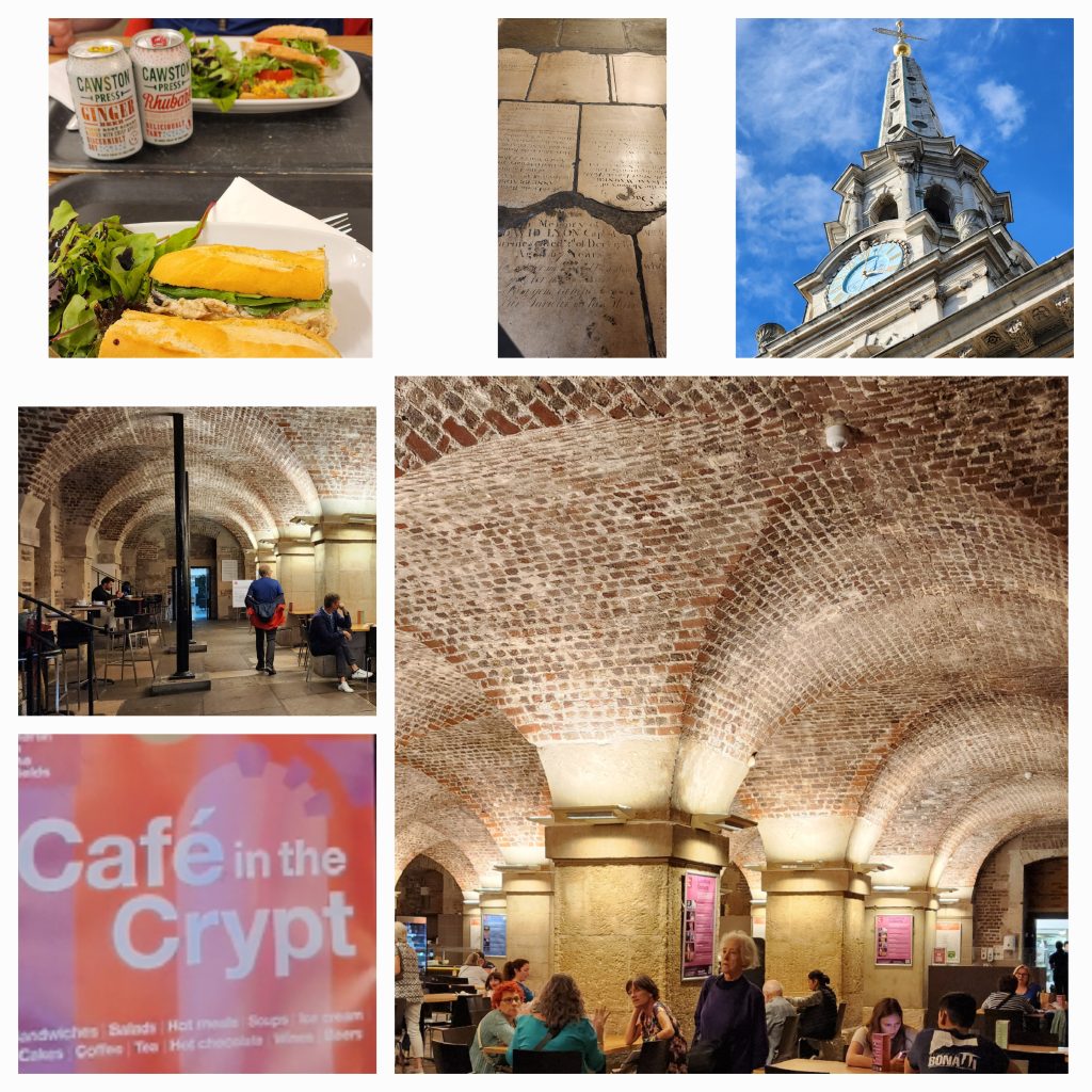 England/Scotland 2024 Pilgrimage – Day 17: London September 18, 2024December 18, 2024Tuesday, September 17, 2024Since we were both exhausted, we decided to sleep in until 8:00. Ten hours of sleep was much needed and refreshing. I worked on the blog a bit, then we were off to find breakfast.Fortitude BakehouseJennie texted several recommendations for eating. She raved about Fortitude Bakehouse so we couldn’t pass it up. Obviously, many others couldn’t, either, since there was a long line down the alleyway it was on. We each picked out two items, a presumably savory Morning Bun for both of us, a Cinnamon Sticky Bun for me and a Chocolate Sticky Bun for Gregg, thinking we had a sweet and a savory.Oops! The Morning Bun was sweet, too, although delicious! It had a cream center with raspberries in an egg based pastry. We were not disappointed, yet decided to keep the sticky buns for later. Oh, Gregg had a Flat White and I had Irish Breakfast Tea. Perfect pairings! There were benches outside so we sat and enjoyed our breakfast and shoo’d pigeons away who wanted a sample.Westminster Abbey Eucharistic ServiceWestminster Abbey has a lunchtime Eucharistic Service at 12:30 so we quickly made our way there. Those going to service were allowed in a different line and didn’t have to pay to get in. Although, they kept a close eye on us going in and out so as not to see the rest of the Abbey for free. No worries. We saw as much as we wanted of the beautiful Abbey, took some photos after the service, and decided we were satisfied with the visit.The service was in the main nave and was special.LambethFrom Westminster Abbey, we walked to the Lambeth area, over the bridge. Lambeth is where Lambeth Palace is located, the permanent residence for the Archbishop of Canterbury. Sadly, he was not taking visitors 😉 but we were able to see it from the tower of the adjoining Parish Church of Saint Mary, Lambeth. Both the tower and the bridge provided beautiful views of London.We ate our stickey buns before our climb and I left my jacket and bag with the ticket agent (a young man studying here from New England.) The stairs were a bit treaturous, but worth it!Lambeth is the location of a large gathering of leaders from the Anglican Communion. It happens every few years. So this was a significant place to visit on our pilgrimage.We have been to Canturbury and visited the Cathedral there years ago. We’ve decided that a visit to Lambeth will suffice on this pilgrimage since Canturbury is at least an hour away from London, often more, by train.Cafe in the Crypt – St. Martin in the Fields ChurchAnother culinary suggestion Jennie offered was the Cafe in the Crypt, located under St. Martin in the Fields Church. It is located in the Trafalger Square area. This required more walking and a Tube ride.We had a late lunch of delicious sandwiches, swapping halves of Corrination Chicken with chutney and Egg and Tuna with black olives. Yummy! They closed at 5:45 which gave us just enough time to go upstairs and see the church. The chancel window is very unique – clear glass with a wavey design. The green trees outside give it an “in the fields” feel.Trafalger SquareTrafalger Square is enjoyed by many people sitting by the fountains or on the steps, relaxing and enjoying the beautiful evening. On the square is also the National Gallery which is free (unless you want to see the special exhibit of Van Gough paintings, in which you’d need to pay 28 pounds each…we passed.)The gallery has a nice collection of Impressionism Art which I enjoyed viewing. Afterwards, we hung out by the fountains in Trafalger Square.Picadilly CircusThe evening was still early so we made our way to Picadilly Circus. It is London’s version of Time’s Square and their theater district. We took in the sites, walked around, then headed back to our hotel. On the way home, we had Ginger Shots. Then stopped at a Tesco Express for Advil (my aching feet!) and dark chocolate digestive biscuits. Isn’t that a lovely term for cookies? It sounds much healthier. Home by the Tube with music at the bottom of the escalator. 2024 England/Scotland Pilgrimage Travels ChurchesGreat BritainTravels