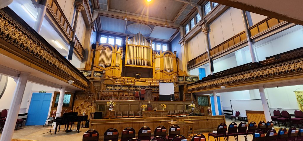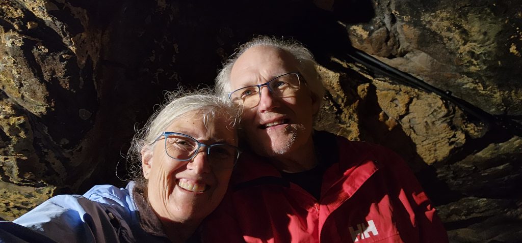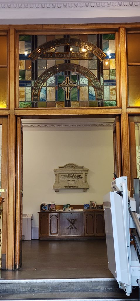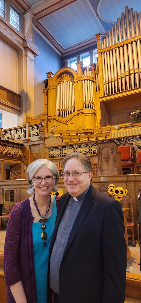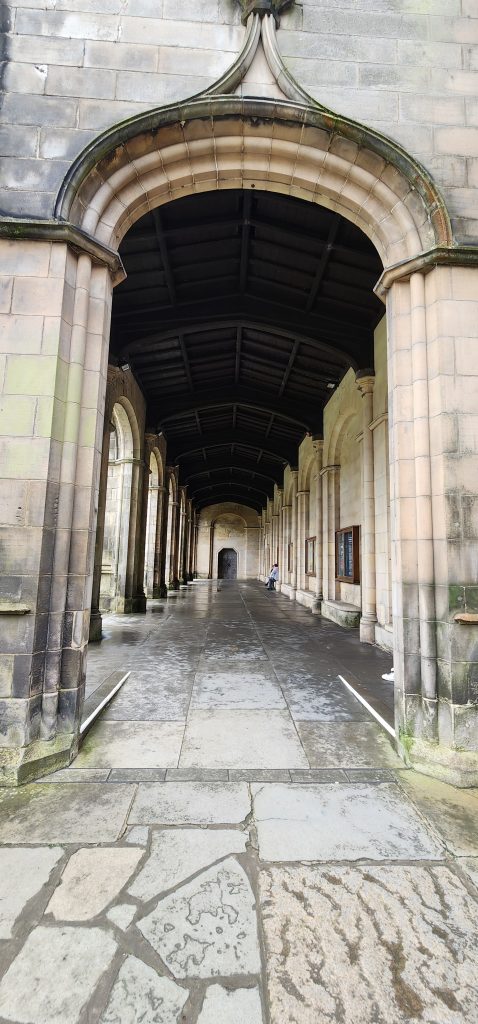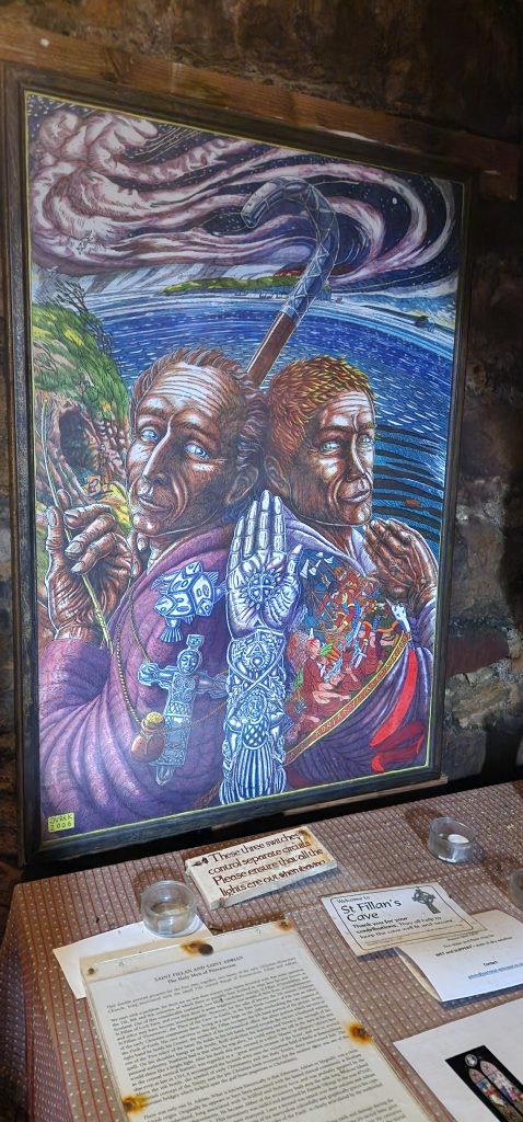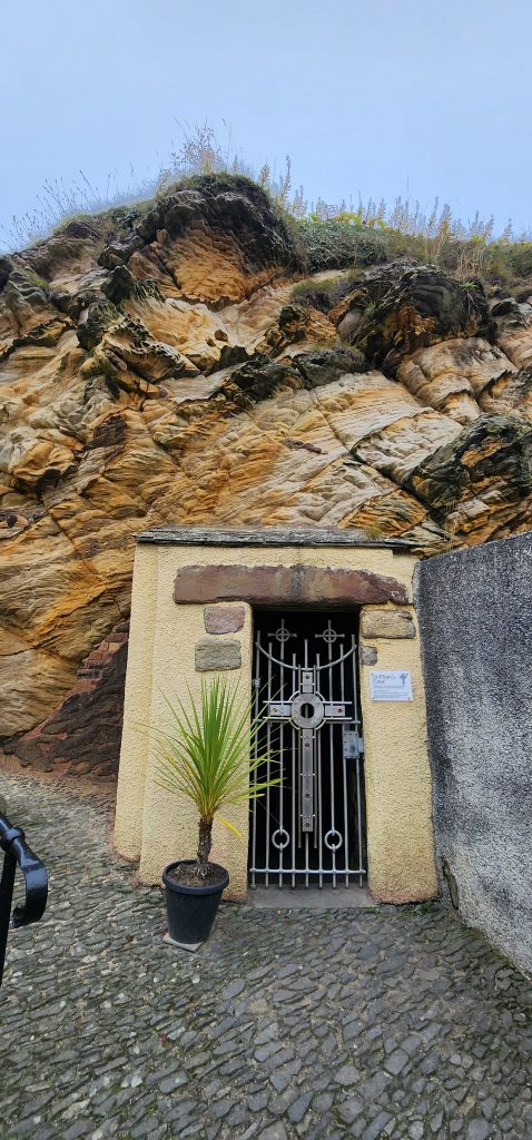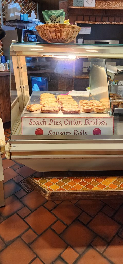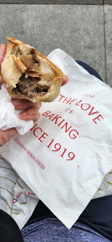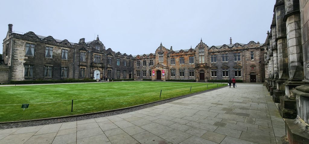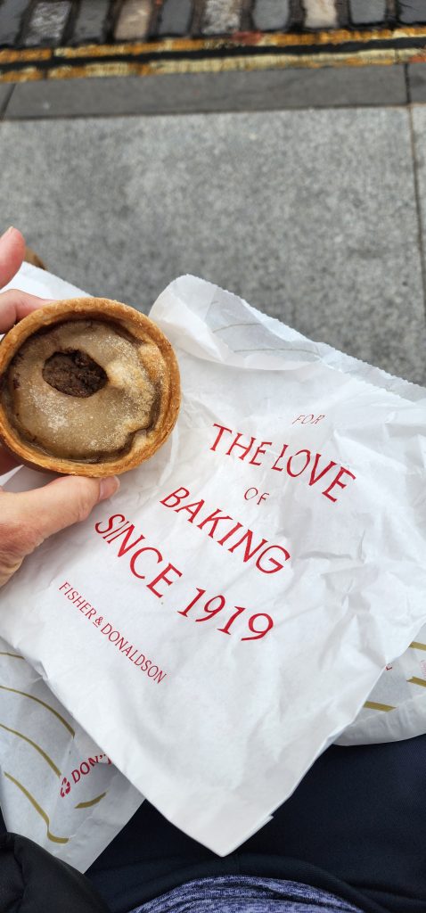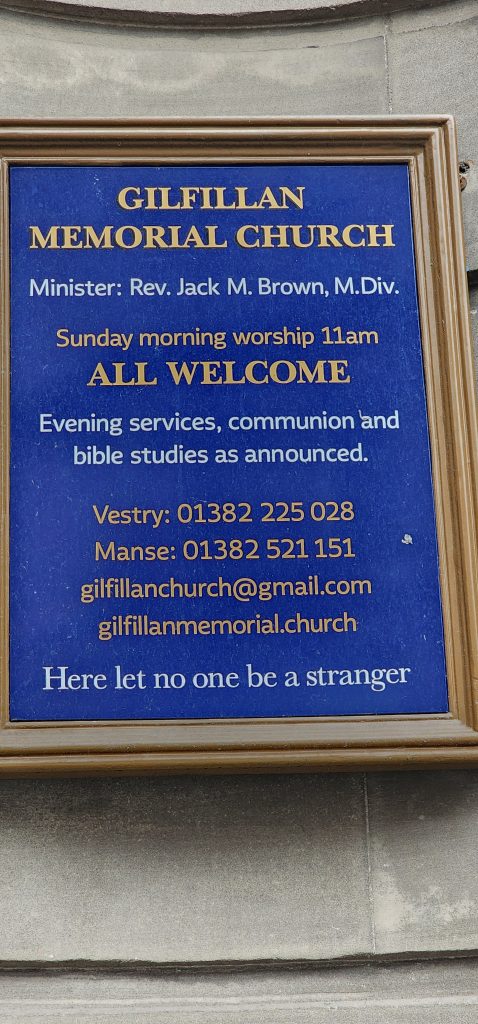 England/Scotland 2024 Pilgrimage – Day 8: Dundee, St. Andrews, Pittenweem September 8, 2024December 18, 2024Sunday, September 8, 2024Foggy SundayThe fog was as thick as split pea soup this morning. It had lifted enough to not inhibit driving, but we went over a very long bridge and saw nothing but the road and the cable-stays going up into the clouds. A perfectly lovely Scottish day.Church in DundeeDriving just over an hour, we went to Dundee to worship at Gilfillan Memorial Church, a Congregational Church. Why, you ask, did you drive all that way to go to a church denomination that you’ve not even mentioned during this trip? Well, I’m glad you asked. Let me preface it with this.Have you read the Sensible Shoes novels?If you’ve talked books with me, you very likely have heard me rave about the Sensible Shoes novel series by Sharon Garlough Brown. It is a down to earth, relatable, soul-care slice of life stories of four women who become friends at a spiritual retreat. She has three other novels and a children’s picture book. Sharon is a spiritual director which is evadent in her writings.I’m on Sharon’s email list and have been on several of her book launch teams, so it feels like I “know” her a bit. She had shared that she and her husband moved from the USA to Scotland for him to pastor a church. When we decided to do this trip, I emailed her and asked, if it didn’t feel like I was stalking her (let’s be real, I WAS), would she share the name of their church. IF we were in the area on a Sunday, and that was a HUGE “if,” we might possibly join them in worship.Gilfillan Memorial ChurchSo here we are on a Sunday, an hour plus from their church… and in the general direction of where we were headed anyways! So, yup! I jumped on the stalking wagon and headed to church.Probably half of their small congregation was “on holiday” today, so there were 20ish people there. The building is old and beautiful. Curiously, it is sandwiched between other businesses. It is like row houses, but businesses. The whole block seemed to be one huge building, portioned out.Jack and Sharon BrownIt was a blessing to worship with them. Sharon and Jack were gracious and we enjoyed talking together after the service. Jack is very interested in the same era of church history that Gregg has been focused on during this trip, Celtic Christianity in 500-700 AD-ish.As we talked, he recommended several books. One is historical fiction over 900 pages. I’ll probably let Gregg read that one and tell me the highlights. That, or we go on a VERY LONG road trip and listen to it on audio. But wait, as I was typing this, Gregg was looking up the book and informed me that it is 1,134 pages. This girl is a slow reader so the odds are great that I’ll pass on that book. (Glastonbury: The Novel of Christian England by Donna Fletcher Crow)As we talked, Sharon told us a story of them going to a small town for hot chocolate. Afterwards, you “ask for the key.” It is a key to unlock the cave where a monk lived in the 700s. Hot chocolate AND an adventure?! Who’s in?! MEEEEE!Who knows, maybe someday our paths will cross again. Jack was signed up to pursue a doctorate at IWS (Institute of Worship Studies) in Jacksonville when Covid cancelled that plan. We invited them to stay in our home should he decide to do the online version which requires students to be on-site a few weeks a year.University of St. AndrewsSpeaking of Covid, we had reservations and tickets for a vacation in St. Andrews, Scotland, in 2020. We were going to stay in dorm housing since students would be gone for the summer. The plan was to do day trips, hiking along the Fife Coastal Path and explore the area for a week, then fly to Ireland for a week.Since that didn’t happen, we HAD to include St. Andrews in this trip. Curiously, it was impossible to get a place to stay anywhere near there. Today we found out why. This weekend, the incoming freshmen and their families were in town. The “freshies” wore (or carried) red capes. Between that and the old buildings, it felt like a Harry Potter movie. Here is a bear wearing one:By the way, The University of St. Andrews is Scotland’s oldest university, founded in 1413. Just try to wrap your head around that one. Students were learning here before the Gutenburg Printing Press was invented in 1440, before “1492, when Columbus sailed the ocean blue,” over a hundred years before the Reformation, and 363 years before America was born. Not to mention, over a thousand 611 years prior to today. [Edited after I actually did the math. It is still a long time, but NOT 1,000 years.] Hard to grasp!Scottish Meat PiesSharon also told us the name of a good bakery “across the street” were we could get Scottish Pies. When I came here in 1986 with Kathy, we were on a budget trip. We’d go into bakeries and each get a meat pie. It was a pastry in the shape of a small deep-dish pie, filled with finely ground meat. The Dundee bakery was closed today BUT we found one in St. Andrews. Oh, my heart!We each got a warm Scottish Pie and shared a rhubarb tart and a large shortbread cookie. We sat on a bench facing a busy street to eat and enjoy people-watching. The spices in the pie instantly took me back to my 26 year old self, traveling overseas for the first time. It was the perfect comfort food on this foggy and very Scottish weather day.Quads and Castles and CathedralsWith full bellies, we walked around town. We saw a spot where the first Scottish Reformation martyer, Patrick Hamilton, was executed for heresy in 1528. It was just outside the entrance to the Quad – a wide grassy square with buildings on all four sides. From there we walked to see the castle ruins, followed by the HUGE St. Andrews Cathedral ruins.Hot Chocolate in Pittenweem FifeOnce we had seen all we wanted to see in St. Andrews, we were off to Pittenweem. The half hour trip was VERY foggy as we drove a long the North Sea coastline. This 