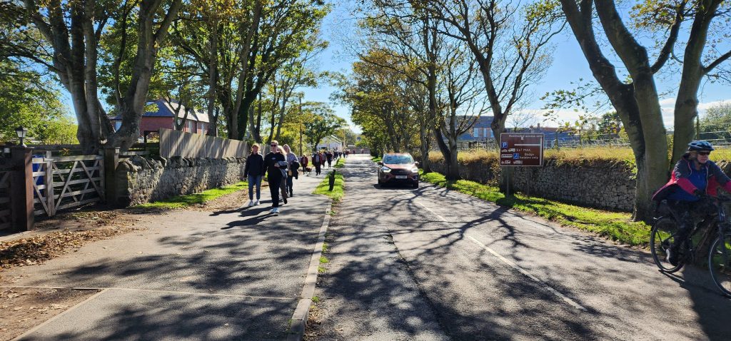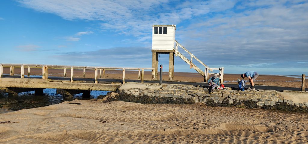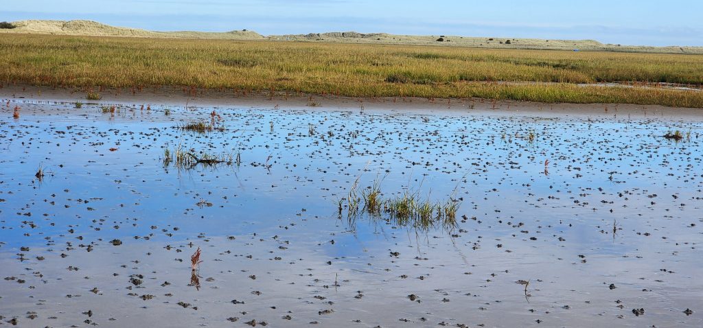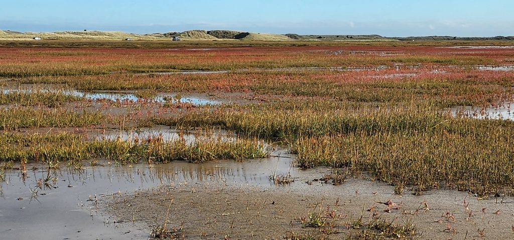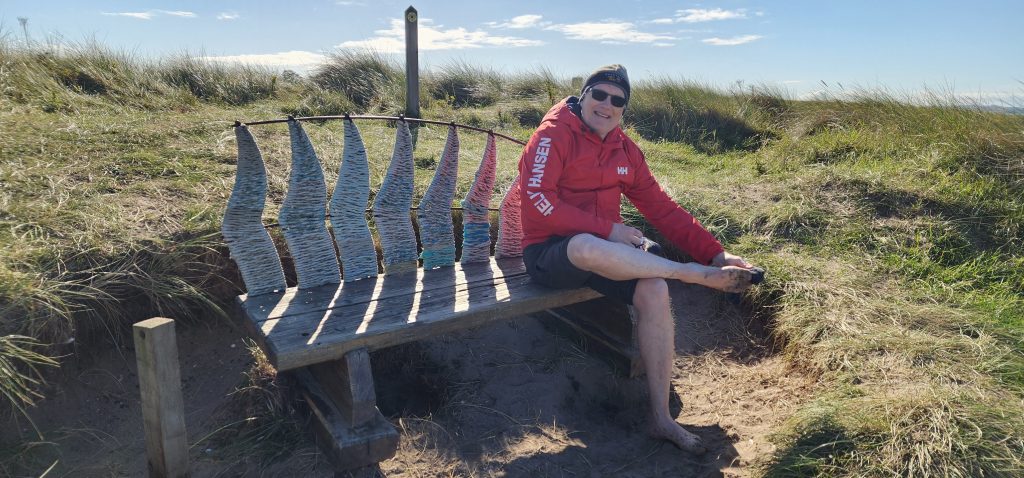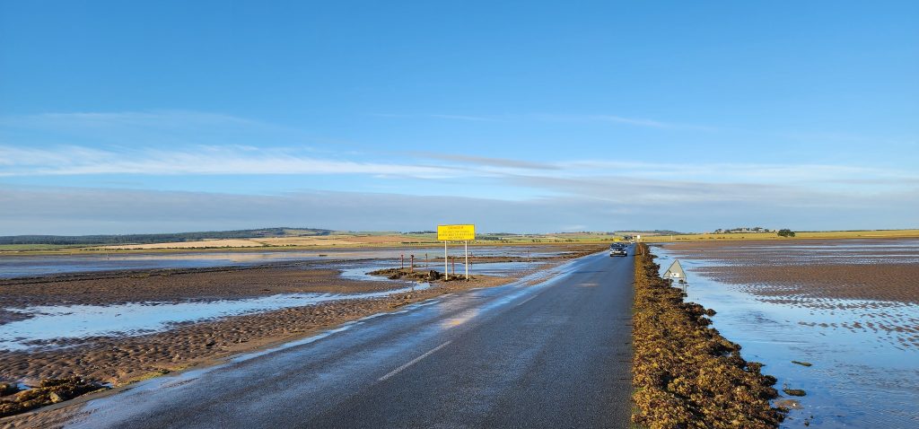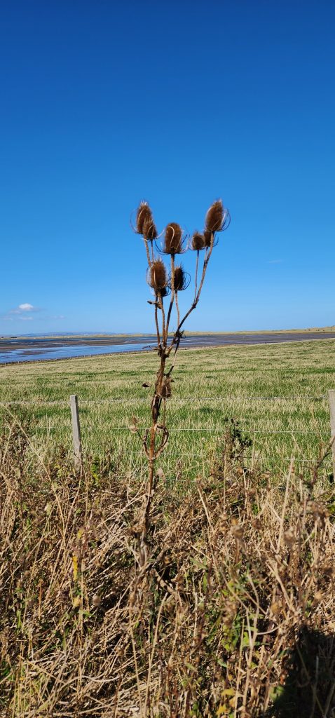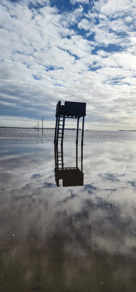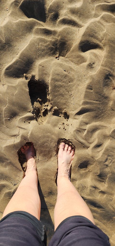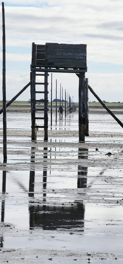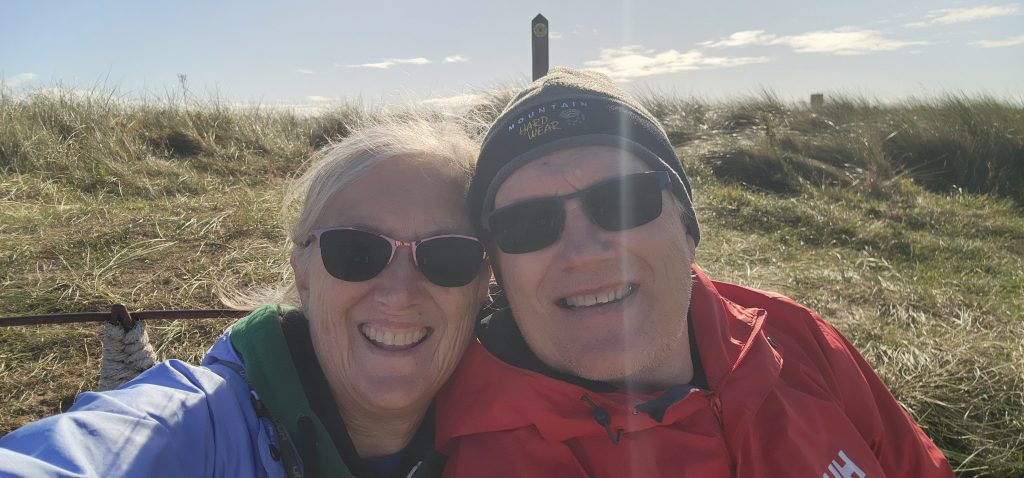 Lindisfarne Pilgrim’s Way – Day 5 of 2025 England Pilgrimage September 23, 2025September 23, 2025Tuesday 9/23/2025MY STARS! The stars could be seen in hordes last night along with the Milky Way. Ever since we made reservations here and I saw that the moon would be in its Waxing Crescent phase, I’ve been hoping for clear night skys. Thanks be to God for the privilege of seeing His glorious handiwork!Our long awaited Pilgrim’s Way walk became a reality today! We were up and out of the guesthouse before 8am. Man, was it nippy! The temperature was 46, feels like 41 degrees and breezy. But we layered – several shirts, then a sweatshirt, then a windbreaker, and Gregg wore a winter beenie and I had my earmuff band and gloves. So we were fine. And by the time we began walking in the sand, we were warmed up. Well, our feet weren’t once we took our shoes and socks off but they quickly became numb so no worries.I’m getting ahead of myself.We walked 3+ miles a long the causeway to the mainland. The plan was to start walking back around 9am. But once we got to the start/turn around point, nature was calling. Eek! Definitely no toilet facilities would be found once we began, so we walked an additional half mile to a cafe and another half mile back. We bought a “flapjack” to take with us – a square oatmeal pastry with fruit in it. Like a brownie, but made with oatmeal (and no chocolate.)History refresher: Saint Aiden was the first monk to come to Lindisfarne (northeast England), along with (probably) a dozen others. In 635 AD, the Northumbrian King, Oswald, requested the monks at Iona (southwest Scotland island) to send monks here to share the Good News of Christ with the people in his kingdom. Saint Aiden mentored Saint Cuthbert and then left him in charge of the LIndisfarne monastery.Reminder: Lindisfarne (now called Holy Island) is a tidal island. Twice a day it is cut off from the mainland by high tide.There are poles lined up from the mainland to Lindisfarne (Holy Island) to guide the way across the tidal flat when the tide is out. Cuthbert didn’t have that advantage. This section through the tidal flat, called Pilgrim’s Way, is just a portion of a longer pilgrimage trail called St. Cuthbert’s Way.The Pilgrim’s Way poles begin on the mainland side of a stream which never completely recedes. That stream is big enough to warrant a one-lane bridge for cars to cross. There was a lot of seaweed on the mainland side of the stream and we had no idea how deep the stream was, so we crossed it via the bridge and began walking in the sand on the Holy Island side of the stream. I know, Cuthbert didn’t have the luxury of a bridge when he made the trek.The hosts where we are staying (highly recommend) at the Belvue Guesthouse calculated a recommended start time of 9am. The “bio-break” caused us to start at 10am but that was not a problem at all. We finished around the peak (?) of low tide.After crossing the bridge, we sat down on a rock wall, took off our shoes and socks, rolled up our pants, and began our pilgrimage walk. There were many parts of hard sand even though it was wet. There were other areas of slick mud. We laughed and pretended to be kids again in sections of muddy sand which ozzed up through our toes as our feet sunk up to our ankles. We waded through water (which was never more than ankle deep) and we gingerly walked over grass and some type of sea grass/growing sea weed (?)As we walked the Pilgrim’s Way, we thought about all the Celtic Christian pilgrims who have walked this “path” for over 1,300 years. That’s hard for me to grasp.Today was a “How Great Thou Art” day and I sang the song over and over in my head as we walked each direction. Brandi and I first started this tradition on our Alaskan cruise in 2016. It is so fitting and lifts my heart to God.O Lord my God, when I in awesome wonder consider all the works Thy hands have made, I see the stars, I hear the rolling thunder, Thy pow’r throughout the universe displayed! Chorus Then sings my soul, my Savior God, to Thee; How great Thou art, How great Thou art! Then sings my soul, My Savior God, to Thee; How great Thou art, How great Thou art! Carl Boberg, 1886We talked with a British couple who began walking just after us and ended as we were putting our shoes back on. They have been on a 10 day holiday walking about 75 miles. They have walked all over the UK and world including the Camino in Spain. It sounds like they make lodging reservations for each night, similar to what we did on our bike trip from Pittsburgh to Washington, DC.I was BUSHED at the end. We’ve walked over 10 miles today before lunch. Soup sounded good, so we found a cafe that had tomato soup and a cheese scone. Then we returned to our guesthouse for a shower and a few cups of tea.There are many other trails we could investigate here on the island, but I just didn’t have the energy. So we’ve been relaxing in our room, eating biscuits (Shortbread Fingers!), and I think Gregg mysteriously helped me get my blog to begin sending again. A mystery. I told it to send immediately after I publish a post.That first email had an old post from 2024 at the beginning. But after that, the blogs from this trip begin. If you use Gmail, your email was likely trunkated after Day 3. If you look at the bottom lefthand side of your email, it might say: [Message clipped] View entire message. Clicking on the link takes you to the whole email including Day 4.We decided that we will pass on attending 5:00 evening prayers. We have a 6:15 reservation at The Ship Inn. We had requested reservations months ago. Yesterday I realized that our “confirmation” email from Visit Lindisfarne said we should receive a follow-up confirmation from the restaurant. But we didn’t. So we dropped in yesterday to ask. Sure enough, we did NOT have a reservation and the main dining room was already booked up (typical on the island.) He did say he’d save us a tab