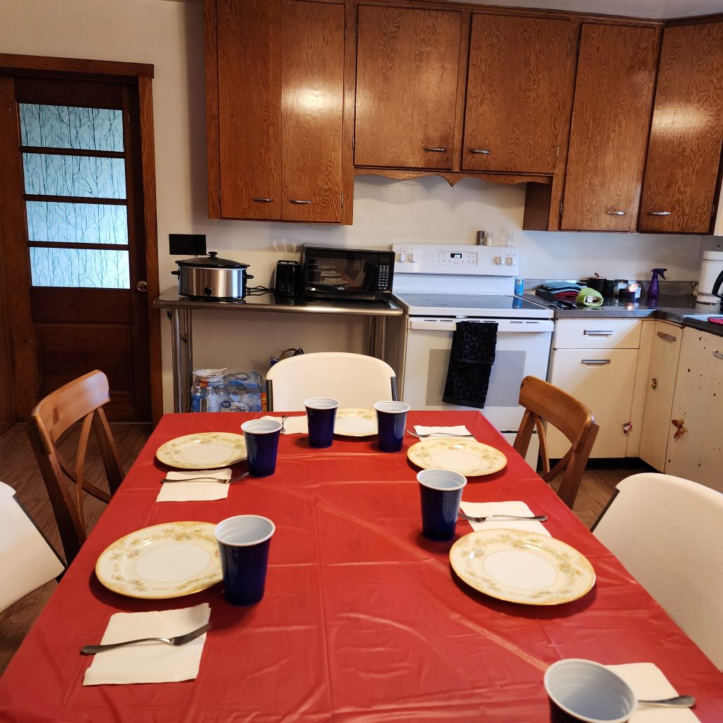 Narnia Road Trip Day 3 – Church and Family December 18, 2023January 2, 2024December 17, 2023Back to MorgantownNarnia Road Trip Day 3 started with Gregg frying eggs for us girls before going to Morgantown for church. It was wonderful to see our friends there. And the service was a special Advent service, Lessons and Carols.After church, we went to Mennard’s, it is like Lowes on steroids. When we close the house, we put buckets of Damp Rid out so we replenished our supply along with something that hopefully wards off mice. No sign of them this time so maybe it works.LoviesI have been crocheting in the car, learning to make cat lovies. Ladybug wants one so we stopped at Michael’s to let her pick out yarn. I found the perfect colors for an Aunt Kitten lovie, too!Birthday CelebrationToday is Doug’ birthday (Gregg’s brother) and we were invited to Dinner at 2:00, hosted by his daughter, Emilee. She had prepared mutton (which coincidentally seemed to blend in with our Narnia theme) and other delicious food. The table was set with china that had been in my family, which made it very special for me.Rachel had come home from Pittsburgh to help celebrate her Dad’s birthday. We were happy to have been able to see her!After dinner, we talked, played a game, and looked at old family photos.It was a wonderful day! Tomorrow we are “on the road again,” although a bit sad that we will miss the 2.5 inches of snow they are predicting here tomorrow afternoon.Thanks for traveling vicariously with us! Travels Narnia Road TripTravels