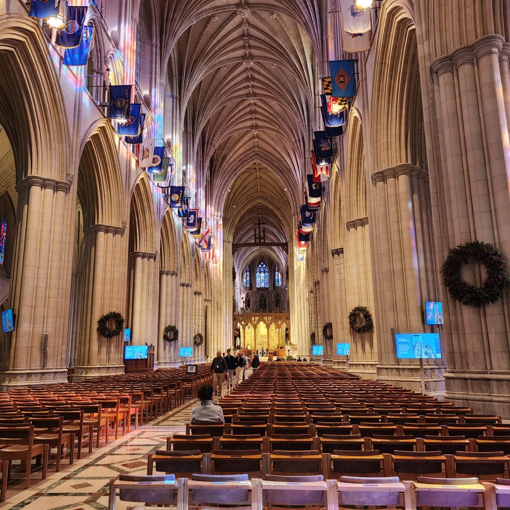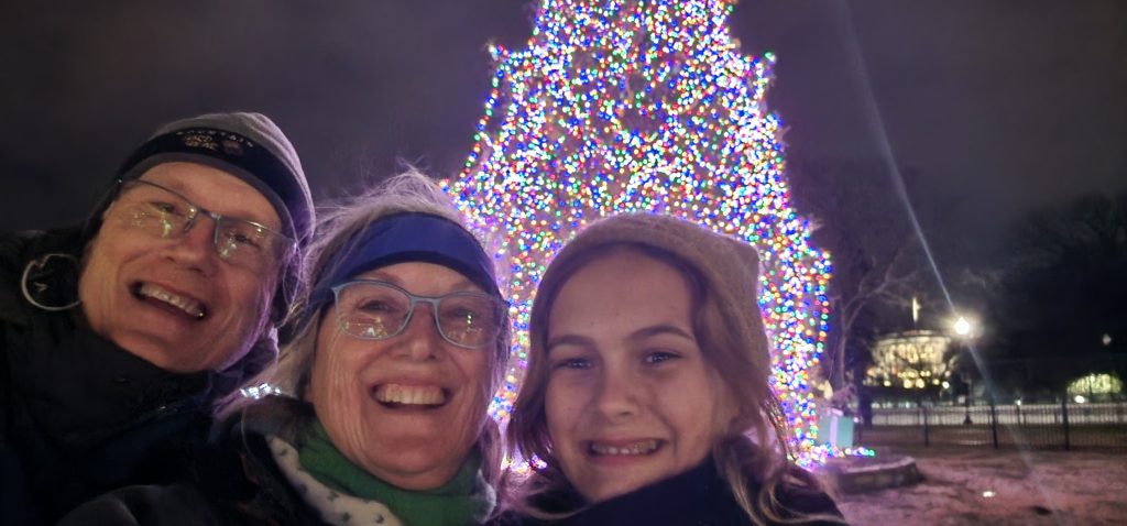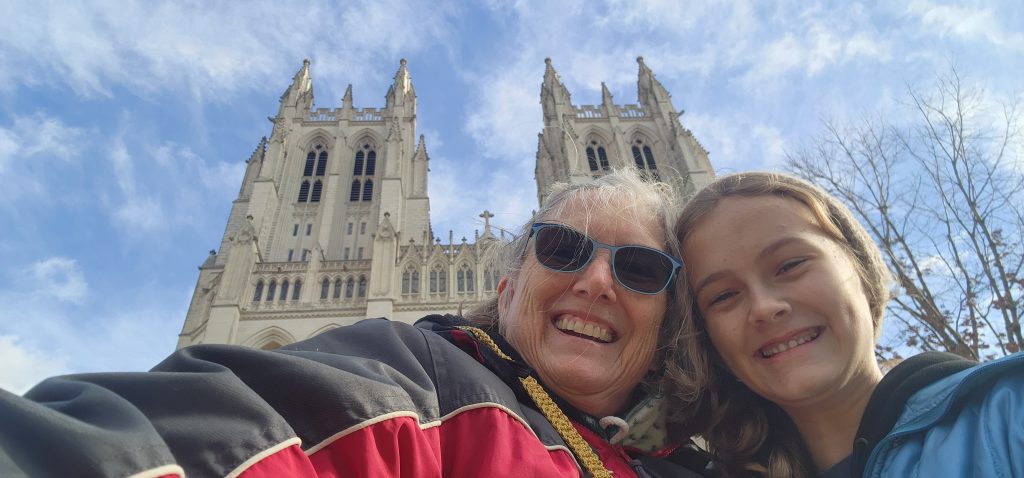 Narnia Road Trip Day 4 – Washington, DC December 18, 2023January 2, 2024Monday, December 18, 2023Wintery MixWe were up early and out of the house by 7:00, headed to Washington, D.C. It was drizzly/rainy all night with the forecast to change over to snow by mid-day. The snow is an unexpected surprise (a few days ago, they had been calling for just rain) and we were disappointed that we were going to miss it. Yet, we did get to see some “wintery mix” as we drove through higher elevations. So, technically, Ladybug has now seen it snow.Our next door neighbor, Kelly, said they got a good bit of snow. Pray that it sticks around until we return on Wednesday.A Horse and His BoyWe are continuing our Narnia Road Trip by listening to the next book in the series, A Horse and His Boy.Breakfast was at McDonald’s – Ladybug and I love the bacon egg and cheese biscuits! Gregg prefers sausage egg and cheese McMuffin. Yum!Washington National CathedralIt was fun to drive past (on the interstate) places we had lived and worked. Germantown, Rockville, Derwood, Maryland. We arrived at the Washington National Cathedral around 10ish (?) and our jaws dropped. It is beautiful and huge and breath-taking.The three of us enjoyed spending several hours going into the many small chapels, looking at the stained glass windows, looking at exibit of many nativities from around the world, and attending the noon Eucharist service in the Bethlehem Chapel.Today is the 19th anniversary of my Mom’s death. I lit a candle in memory of her.The Cathedral was in the process of being decorated for Christmas. This is the season of Advent on the church calendar so they typically wait until Christmas to decorate. The Christmas season is 12 days – until Epiphany on January 6. There were also obvious preparations for Sandra Day O’Connor’s funeral tomorrow. We even saw them practicing with a casket.There is a gargoyle of Darth Vader. We looked in vain, never being able to spot it.I was surprised and happy that Jaelynn enjoyed being there as much as us. I think her world history classes have helped prepare her to see things she’s learned about (like types of architecture.)Lincoln MemorialFrom there, we drove into the city by way of Georgetown. It was nice to see many of the monuments amd memorials from the car as it is quite cold and windy. There isn’t easy parking so Gregg dropped us off at the Lincoln Memorial and drove around until we were done. Ladybug had really wanted to see Abe so I’m glad it worked out.We finally checked into the Crystal City Hampton Inn, happy to have a place to park the car for 24 hours. We put on more clothes and headed out to the Metro station.National Christmas TreeWe figured out tickets, then went one stop to Pentagon City and found a food court there to eat supper. Then we got back onto the Metro and got off at Federal Triangle. From there we walked to see the National Christmas Tree (gigantic!) and the 50+ smaller trees representing the 50 states, territories, and a few other places. They are located in a park across from the White House. It is always beautiful, all lit up at night, and even more-so decorated with Christmas greenery. The music and atmosphere were delightful.We reversed the Metro trip to return to the hotel. We’ve wiped the girl out – she was yawning and asking to go back to the hotel.Tomorrow morning we have tickets for the Library of Congress. We must get our vehicle out of the hotel parking garage by 2:00 and then we’re off to Pittsburgh!I better catch some zzzz’s… Travels Narnia Road TripTravels