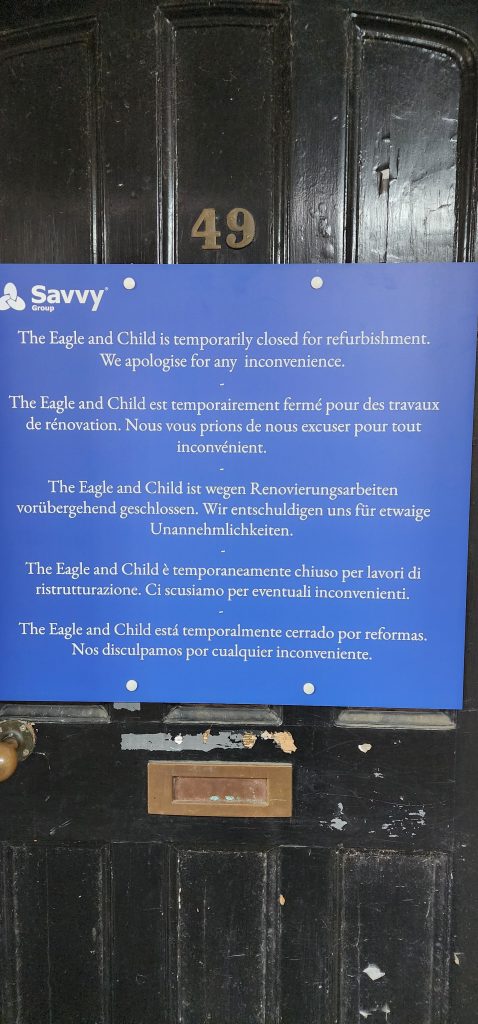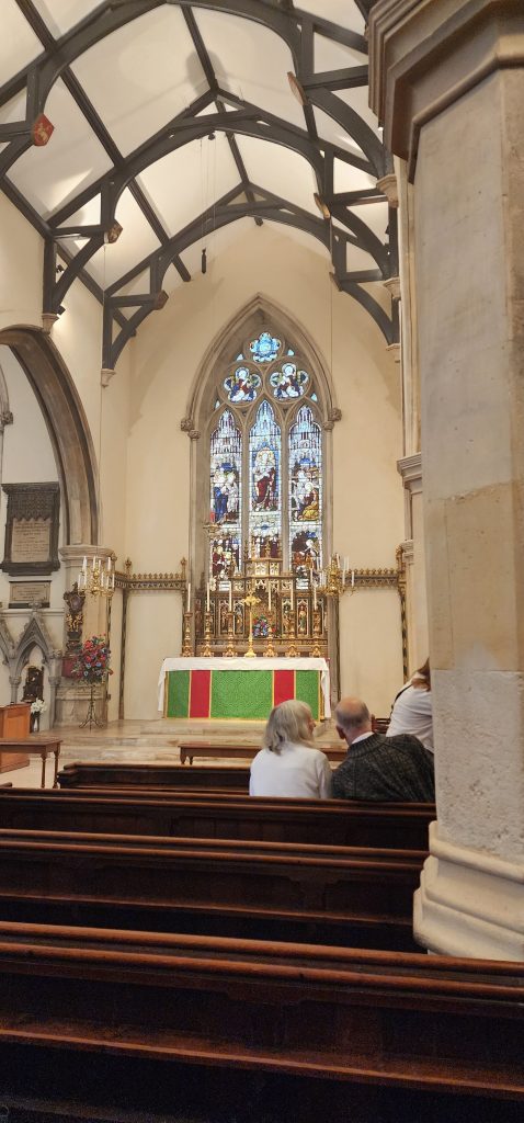Oxford – Day 3 of 2025 England Pilgrimage September 23, 2025September 23, 2025Sunday 9/21/2025Ahhh, we slept wonderfully last night, snuggled under a duvet with the fresh cool air coming in the window. I woke up when the alarm went off at 7:30, rolled over, and snoozed another half hour or so. When I finally got up, a parody of Neil Sedaka’s song, Breaking Up is Hard to Do” popped into my mind…. WAKING Up is Hard to Do! I wonder it Weird Al Yankovic has written that song yet. Steve had the same problem so we went to church without him. I was running too late to get a cup of tea. A few extra winks was worth it though. So far, I feel like the No-Jet-Lag pills we took while flying have helped with the time difference. I just need to catch up on a bit more missed sleep. (The homeopathic pills state that they are not for sleep deprivation, just circadian rhythm.)Jennie and Steve regularly attend Christ Church Cathedral in Oxford. We joined them there last year. It was an amazing experience. AND, there are so many old churches in the area, we wanted to visit a different church today.After suggesting a short list of churches to choose from, we decided on Saint Mary Magdelen Church in Oxford. It is an Anglo-Catholic Church, meaning it is Anglican while their style of worship more closely follows the Catholic traditions. https://stmarymagdalenoxford.org.uk/Jennie drove us 20ish minutes to Oxford where we parked along the street and then strolled another 15ish minutes into the heart of Oxford. Our route took us past the historic Eagle and Child Pub where The Inklings met – a writing group including JRR Tolkein and CS Lewis. Gregg and I met Jennie there when we toured England with Cathy and Erika after Hungary English Camp years ago. The pub has been sold and closed down for “refurbishing” for a while now. It doesn’t look anywhere near being ready to reopen.As we neared St. Giles Church (another option we could have attended), we could hear the joyful peel of the change-ringing bells. They were playing them again when we passed on our walk back to the car. Delightful!The St. Mary Magdelen Church 10:30 service was “High Mass.” The processional included incense which was used at other various parts of the service. Much of the service was sung or chanted, including the gospel reading. And the choir sang many beautiful liturgical songs. Gregg and I were curiously watching the Chalice Bearers. They held their chalices high when they walked. Two served at the center rail (there were also rails to the left and to the right.) They served side by side, so two people received the cup at one time, then they moved down to the next two. The wine was a white wine. I don’t know if that is typical of Anglo-Catholic churches, or the Vicar’s preference. It would not be our choice (but they didn’t ask. )After service, we stopped by a deli, Taylor’s, and selected sandwiches to take home for lunch. Jennie heated them up and they tasted so good! Mine and Jennie’s had goat cheese on it. Gregg had salami and cheese. Steve had a Mediterranean samosa with lamb.After lunch, Gregg and I were “on the road again.” We have reservations on Lindesfarne (Holy Island) for Monday and Tuesday nights. There is a road to drive onto the island during low tide so we want to arrive tomorrow before 1:50 pm. It would take almost 7 hours to drive from Jennie and Steve’s. With potential traffic surprises, we all agreed it would be best for us to drive at least part way today. So we got a Hilton Garden Inn hotel room in Sunderland, next to their football stadium (Americans would call it a soccer stadium.) It is “boring” to stay in an American brand hotel in Europe, but we used points so, Hilton it is!Going to our room, we were reminded that we are back in the land of “lifts” (elevators), “Fire Doors” (which must stay closed, sometimes resulting in tricky navigation with luggage), and the “First Floor” being up one flight of stairs. Got to love the subtle differences in our similar cultures. ♡Well, time for bed. One last note – it appears my website once again neglected to send out a blog email this morning. I thought I had fixed it but apparently not. The next way I know to try to fix it may send you copies of older posts.I apologize in advance if this happens. It “should” only happen once.Cross paws the other direction. Here’s hoping! 2025 England Pilgrimage - Part 2 Travels ChurchesGreat BritainPilgrimageTravels
