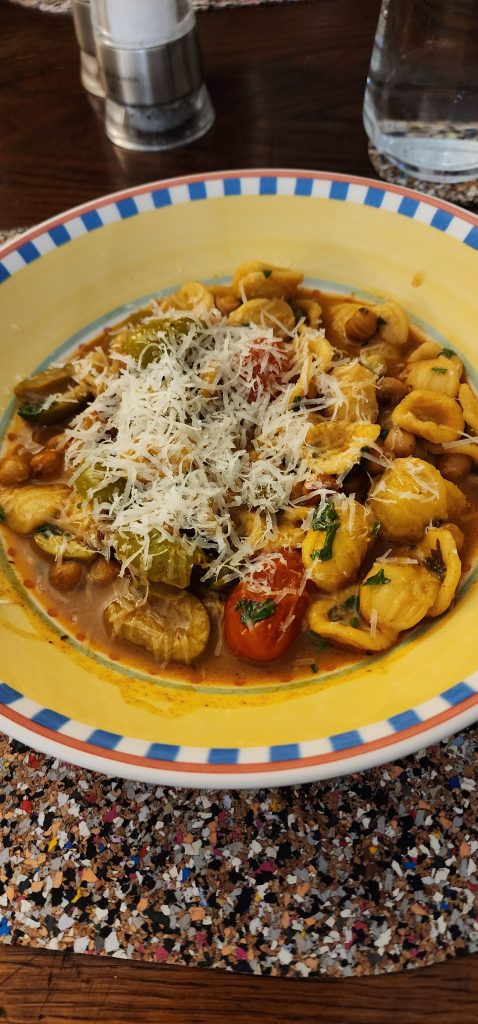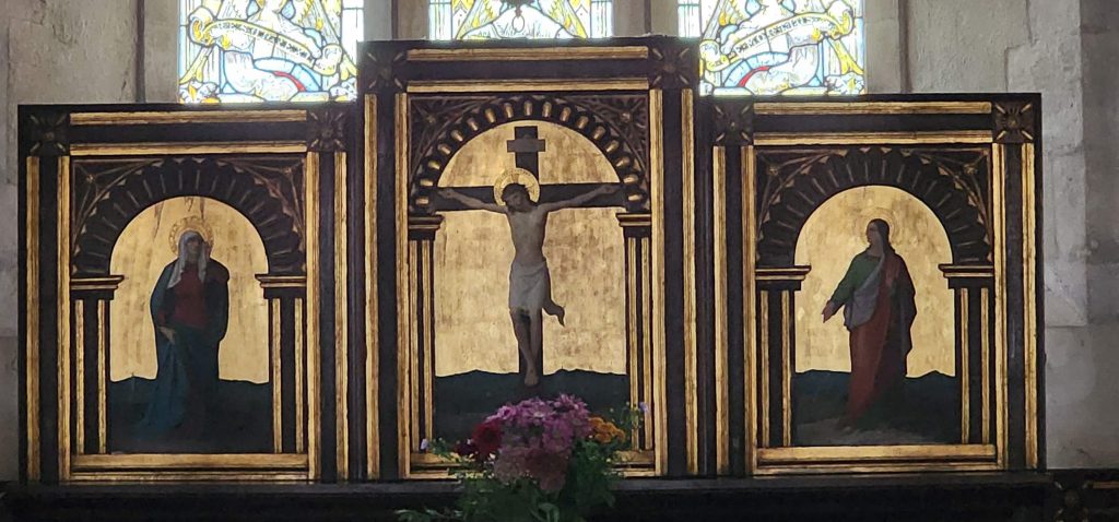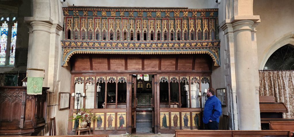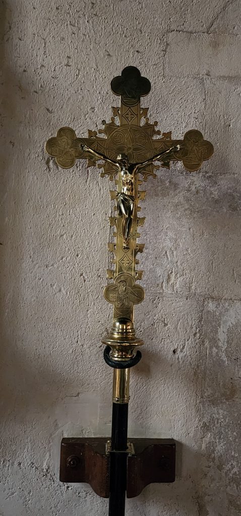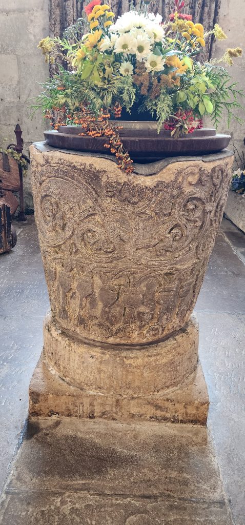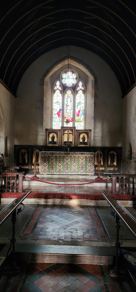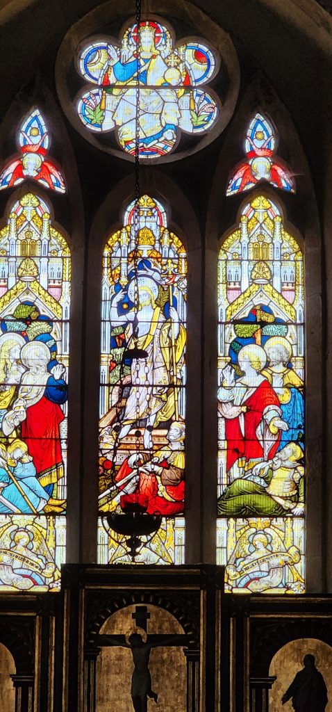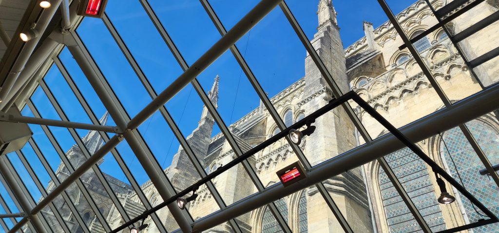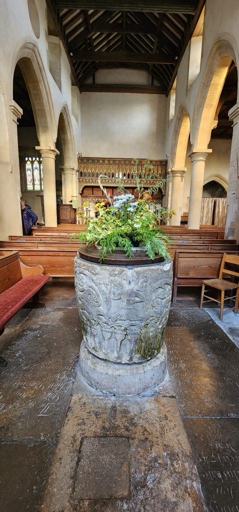 Salisbury & Avebury– Day 17 of 2025 England Pilgrimage October 6, 2025October 6, 2025Sunday 10/5/2025Today was packed full of wonderful experiences and gems. Though we saw a lot, I didn’t feel rushed. We just enjoyed the journey together as the day unfolded.We knew we all wanted to begin with church at Salisbury Cathedral. The Eucharistic Service was at 10:30.After easing into the morning with coffee or tea and a light breakfast at Steve’s cozy row house, we walked 10ish minutes to the Cathedral. The rain had passed but it was still a blustery day. Even so, it was a lovely day to be outdoors.I was rather surprised at the crowd that attended the service. The Cathedral was nicely filled… with people in coats, boots, scarves, and some with gloves. They came prepared, knowing that the heat isn’t turned on until late October. The bulletin states:We are carefully monitoring temperatures as we head into autumn. We plan to turn on the Cathedral heating towards the end of October, as usual. Please dress appropriately during this transition period. This arrangement supports our environmental aspirations: even in the martingale months of April and October, heating the Cathedral for just one day emits as much carbon dioxide as it takes 24 mature trees a whole year to absorb. – Kenneth Padley, Canon TreasurerNobody seemed to mind. And many people stayed for coffee after the service so the chill in the air may have encouraged that social time. It was lovely to see everyone enjoying each other. Jennie and Steve saw some friends and had a nice chat catching up. (I liked their style of walkers – light, easy to fold up, but expensive in the US.)There was a “fair trade” table set up in the back as well. We bought a dark chocolate Advent calendar.Thanks be to God, the big screens from yesterday were gone. No more Frosty the Snowman pictures blocking the view through the quire to the Martyrs Window. Gregg commented that of all the Cathedral’s we have visited, this may by his favorite. The stonework in the lower columns includes dark gray. As your eye goes up towards the high ceiling, the colors and space become lighter. It instinctively lifts your eyes up, which also lifts our hearts and spirits up towards God.The alter was beautifully decorated for fall because it is their Harvest Festival – a day of thanksgiving for farmers and the food God has provided us through them. The congregation was invited to bring non-perishable items to be distributed through local charities.I don’t think I commented on the font yesterday. It is large, beautiful shape, filled with water that overflows on four corners and is recycled back. Though the water is flowing, the water looks still. The reflections in the water are gorgeous. There was a baptism yesterday afternoon. I bet it was a very special service around that font.Much of the service was sung. The whole service was special.There was a men and boy’s choir who sang throughout the service. Their voices were beautiful and the acoustics allowed their voices to fill the Cathedral. They say in chairs to the side and back of the alter, not in the quire, which was further behind the alter that was used.No incense was used in this service. The past two weeks we attended more “high church” services which did include incense. The fragrance is a memory-connection to Christmas Eve Midnight Mass at St. Mark’s Episcopal Church in Cocoa, Florida as a teen. That is the church Jennie attended a long with several other good friends such as Anne and Susan.Looking back on my life, I love how God introduced me to the Episcopal Church in high school. Then He used the Episcopal Church to draw me back to Himself before I met Gregg. I had become hurt, disillusioned and angry with God and walked away from Him during college. Life without God felt empty and I eventually chose to seek King Jesus again. Once married, I introduced Gregg to Christmas Eve Mass and it had become a cherished family tradition. Then, September 17, 2023, Gregg and I became confirmed in the Episcopal Church (which is part of the worldwide Anglican Communion led by the Archbishop of Canterbury.)And now, during our second Pilgrimage visit to the United Kingdom, the next Archbishop of Canterbury has been announced. It is a historic moment. The first woman has been appointed Archbishop. I watched a video interview of Bishop Sarah Mullally, the current Bishop of London, in which she shares her faith and vocation journey. It is interesting and encouraging. Here is a short written bio about Bishop Sarah.After church and coffee hour, we went to the Cathedral’s Cafe for lunch. The ceiling is glass, so we sat under the spires as we ate. So lovely! Gregg and I shared a “Sunday Roast,” a very traditional English meal on Sundays. It included roast pork, roasted potatoes, carrots, and parsnips, bread pudding, and cabbage salad. We also shared a fruit scone, but I didn’t share my small pot of tea that came with the scone. It was all very delicious.We didn’t see the Magna Carta yesterday so the guys went to see it (our tickets are valid here for a year) while the girls browsed the gift shop.After one last walk through Canterbury, we returned to the townhouse, packed up, and headed out. There were many options, including going straight home, but I am tickled about the option we chose.Driving through country roads through the rolling countryside, we went to Avebury. (pronounced with a long A) It is a World Heritage Site. The village is surrounded by a stone circle – standing stones similar to those at Stonehenge. Outside of that circle is a deep ditch, then a steep hill – presumably made from the contents dug out of the ditch. One of the many mysteries is that the hill is outside the most which indicates the ditch and hill were for keeping people (and animals?) inside the ring rather than protection from those outside the ring.The mystery of it all is magnified by the fact it was constructed somet