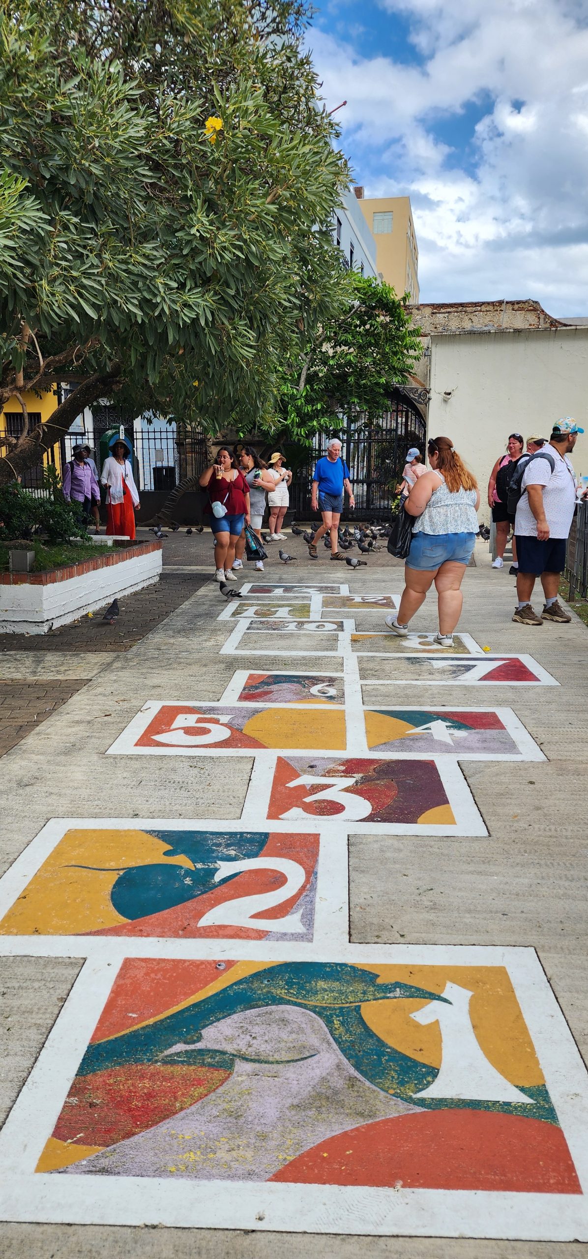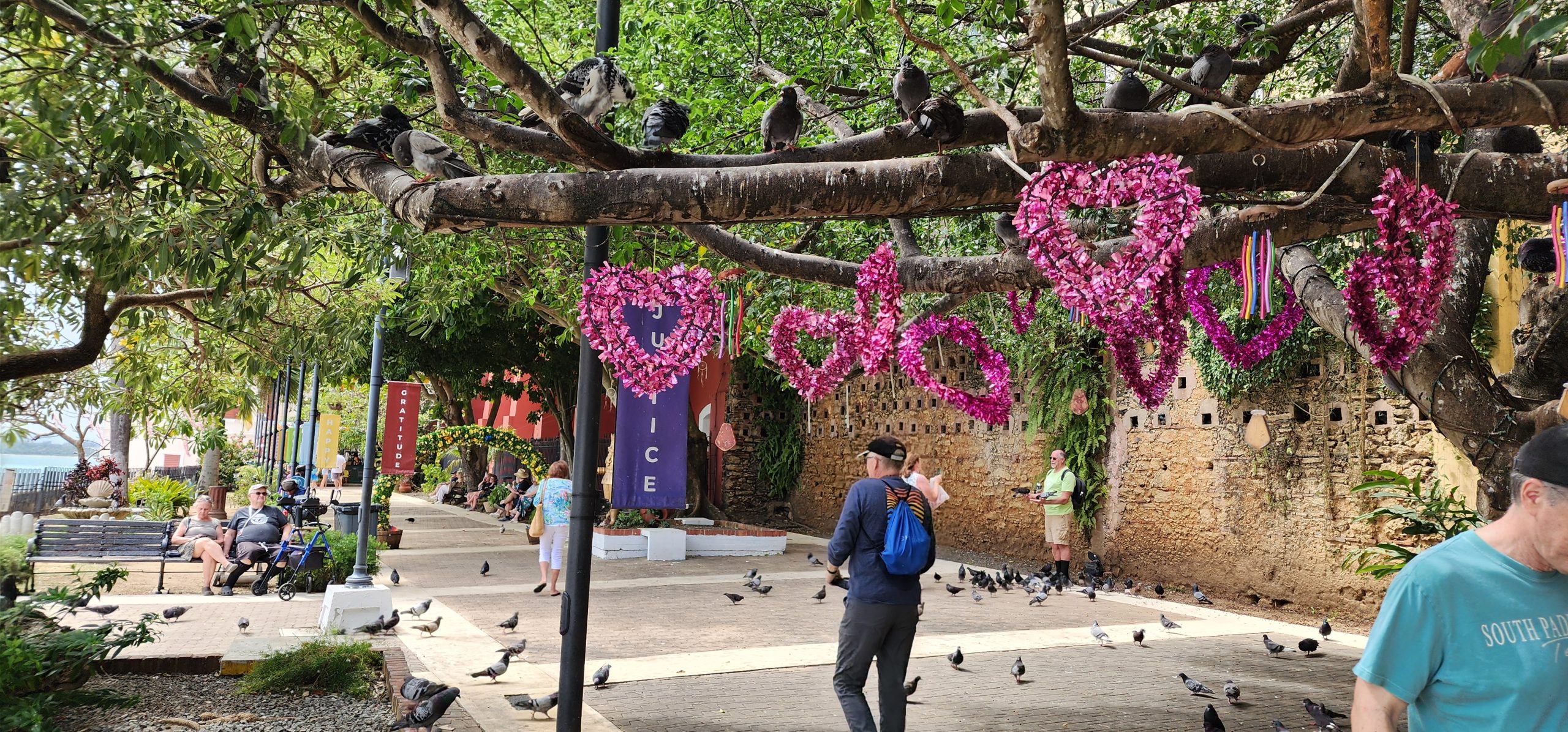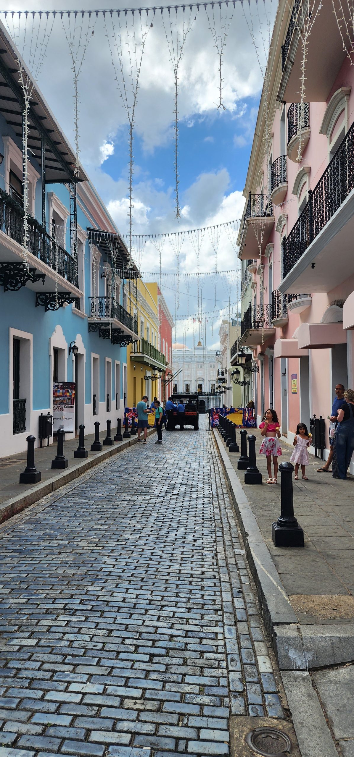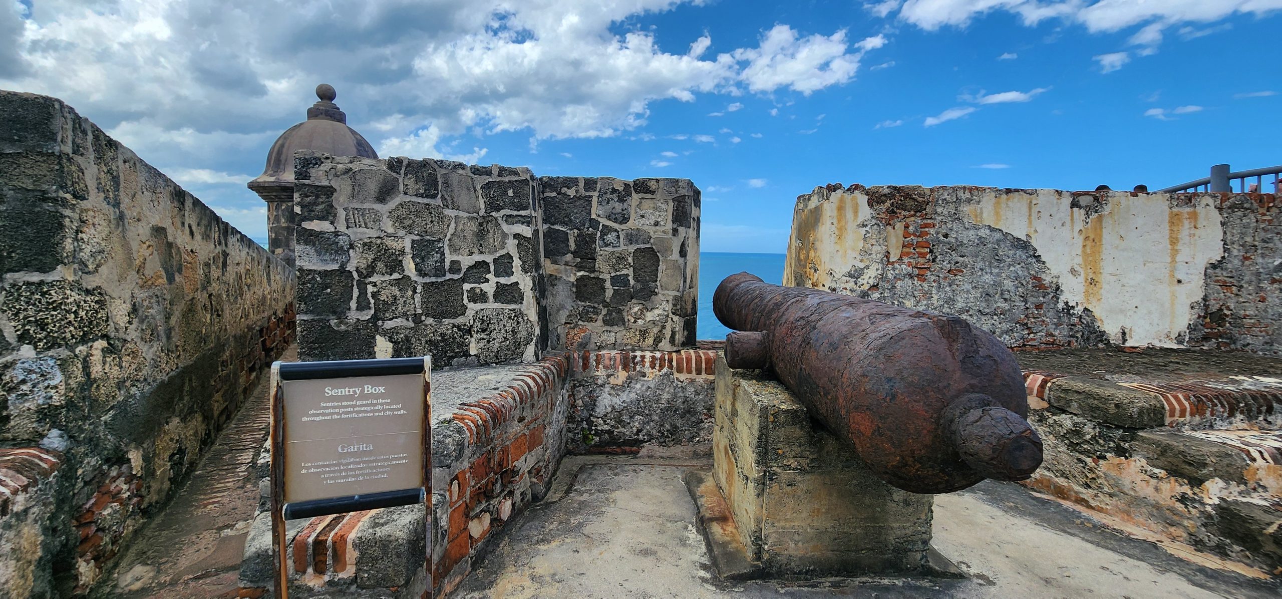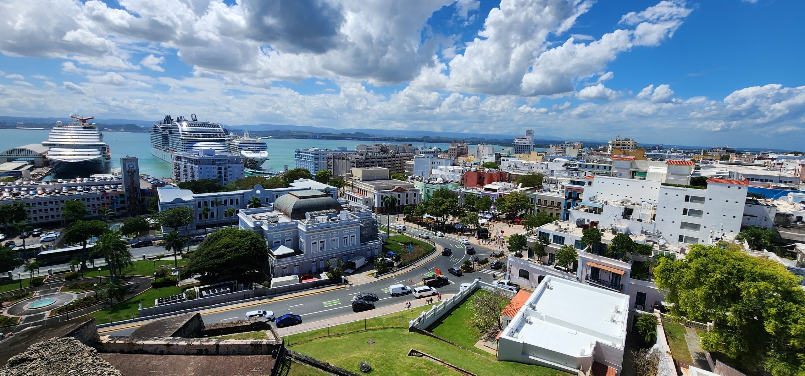 San Juan, Puerto Rico – Norwegian Gem Caribbean Cruise 2026 February 24, 2026February 24, 2026Tuesday, February 24, 2026We had a slow start this morning due to mistakenly changing our clocks last night. They actually need to be turned back an hour tonight.It was probably 10:00 am when we left the ship, an hour after we were permitted to go ashore. Gregg had done a quick search of things to see on foot from the San Juan port so he led the way. His first directional landmark was Walgreens. It was easy to locate since it is directly across the street from the port gate.He led us through town to Castillo San Cristobal, a San Juan National Historic Site. Thankfully, I read a tip to take my National Park Pass in case I wanted to use it in Puerto Rico. We were able to use it to get into this fort as well as another.Castillo San Cristobal reminds me of Castillo de San Marcos in St. Augustine, Florida. Though this fort is MUCH larger. and has many tunnels. It makes sense now, but I had never thought about this being a stratigic area to control for military and trade for the last 500 years. The two forts in San Juan also played important roles during World War I and II.From Castillo San Cristobal, we walked towards the fort at the mouth of the harbor, enjoying the ocean view down below as well as the colorful buildings on the opposite side of the road. Castillo San Felipe del Morro is surrounded by a huge grassy field. Between the wide open space and the constant wind coming off the ocean, it is the perfect place to fly kites. What a happy sight; I hadn’t seen kites in years.Spain began building Castillo San Felipe del Morro in 1539 and worked on it 250 years. Today it looks similar to the way it looked in 1790. It is smaller than its neighboring fort. Yet, it is my kind of fort – the interior courtyard is painted yellow and white.While touring the fort, we looked down and saw a fuel barge which had broken loose from its tug a few weeks ago and ran aground. It is living up to its name, Defiant. They are still working on getting it unlodged. Due to this, the harbor entrance is periodically blocked (I suspect during high tide.)Defiant caused us to be two hours late getting into port and we were just informed that we will be another hour late in leaving. That plan works well for me, thank you very much! I’m not ready to post this yet so I’ll have another hour of internet to work on it.After exploring this second fort, we headed downhill, through many narrow streets with sidewalks flanked by a building on one side and a one-way single lane street on the other. Many buildings are colorful so it is a festive, happy vibe. Some of the brick roads were painted blue.We went into a Roman Catholic Church, then visited the Roman Catholic Cathedral. We saw the decorated streets of Calle Fortaleza, walked through a famous pigeon park, and walked along the Paseo de la Princesa on our way back to the ship.Speaking of our ship, I thought it was a fair sized ship until this port. An MSC ship docked next to us. It has seven decks of balcony rooms. There is a Carnival ship on the other side of the MSC which also looks bigger than our ship.We returned to the ship hot, sweaty, yet content at 2:30. Staff greeted us with cold, wet washclothes and cold lemon water. Perfect!Tomorrow is a sea day. Thursday we will be at Norwegian’s private island, Great Stirrup Cay, where we plan to rent snorkeling vests and use masks and snorkels we brought to hunt for colorful fish. Friday is another sea day. Saturday morning we arrive home in Jacksonville.We’ve really enjoyed this cruise. I’m glad that Jacksonville’s port has this nice option now. It is my understanding that the Gem will port in Jacksonville from November to April. They will relocate somewhere else for the summer, returning again in November.I probably won’t write another post since we will eat, read, sleep, and repeat. Nothing newsworthy. Just the way we like it. Thank you so much for traveling vicariously with us! 2026 Caribbean Cruise from Jacksonville Travels CaribbeanChurchesTravels