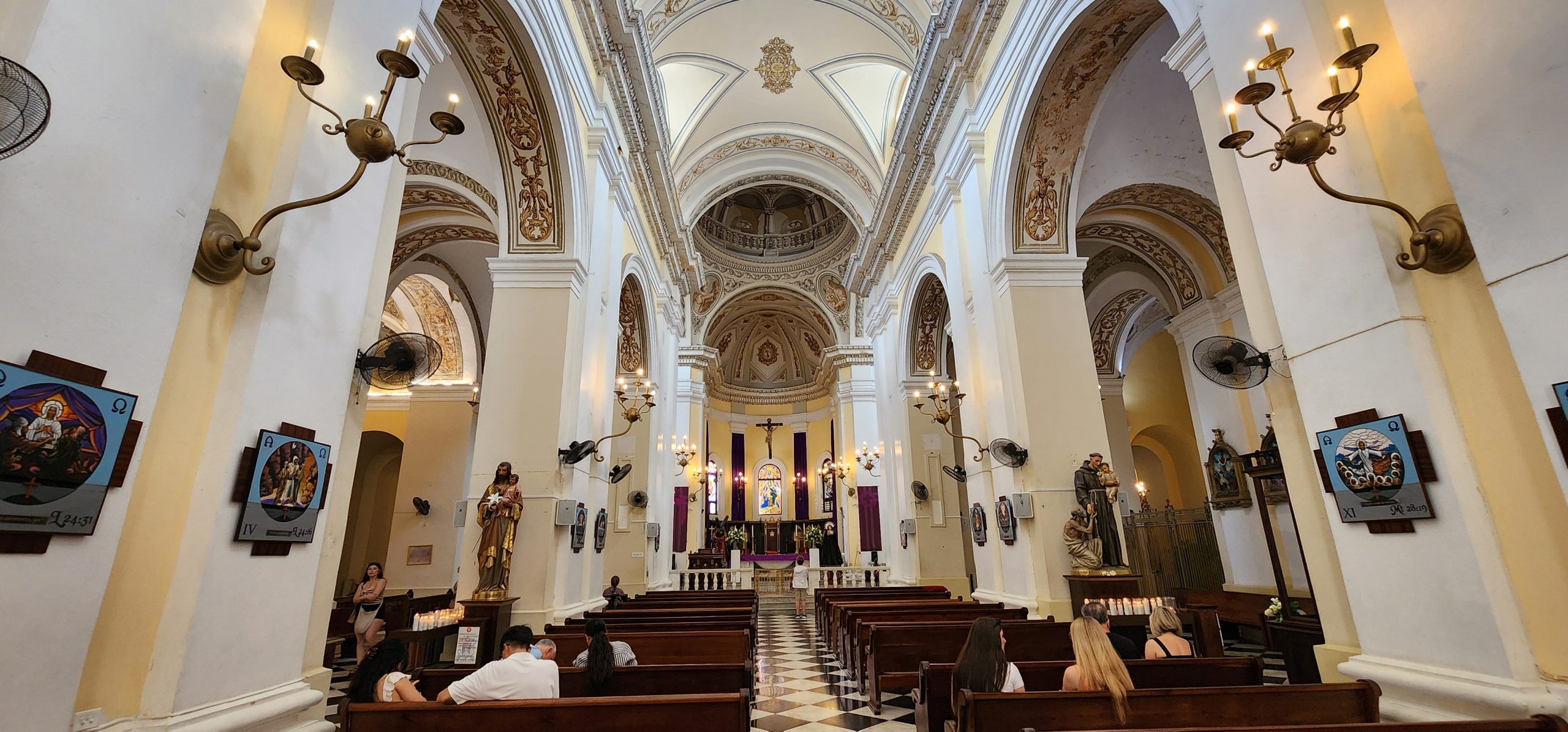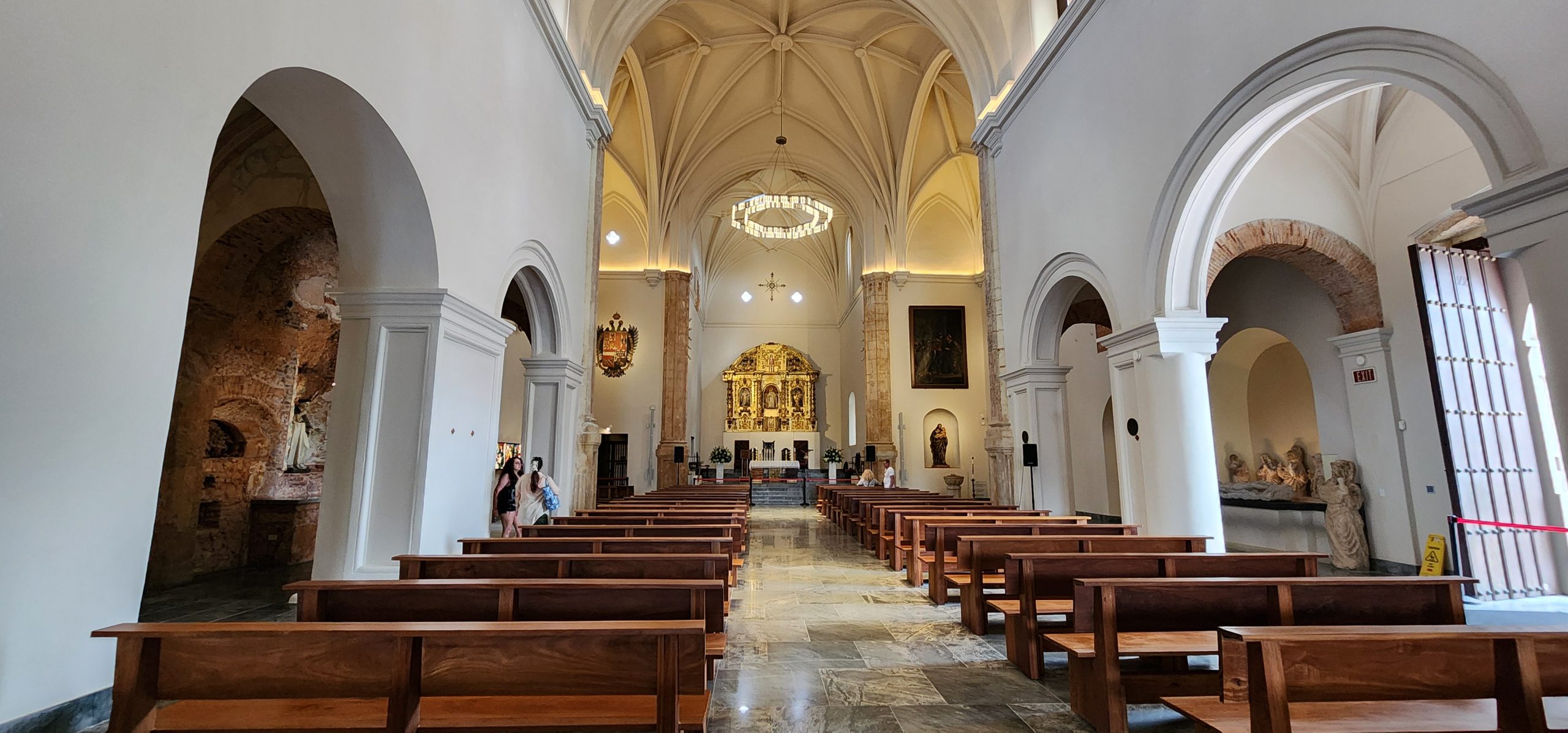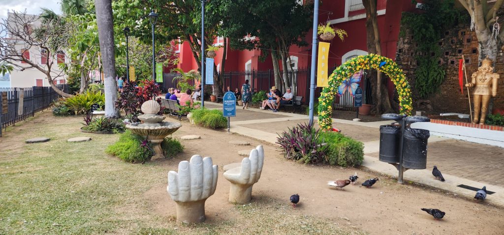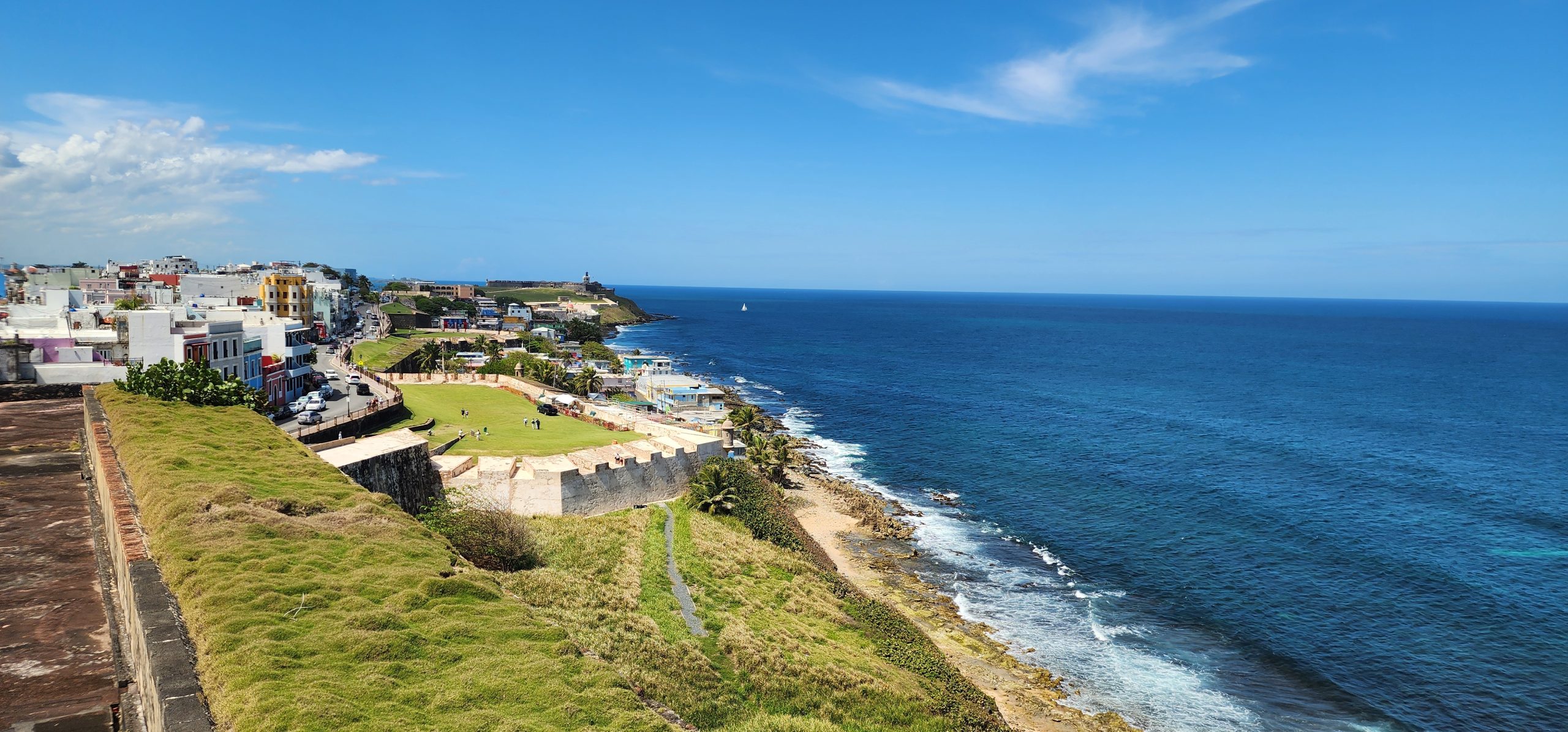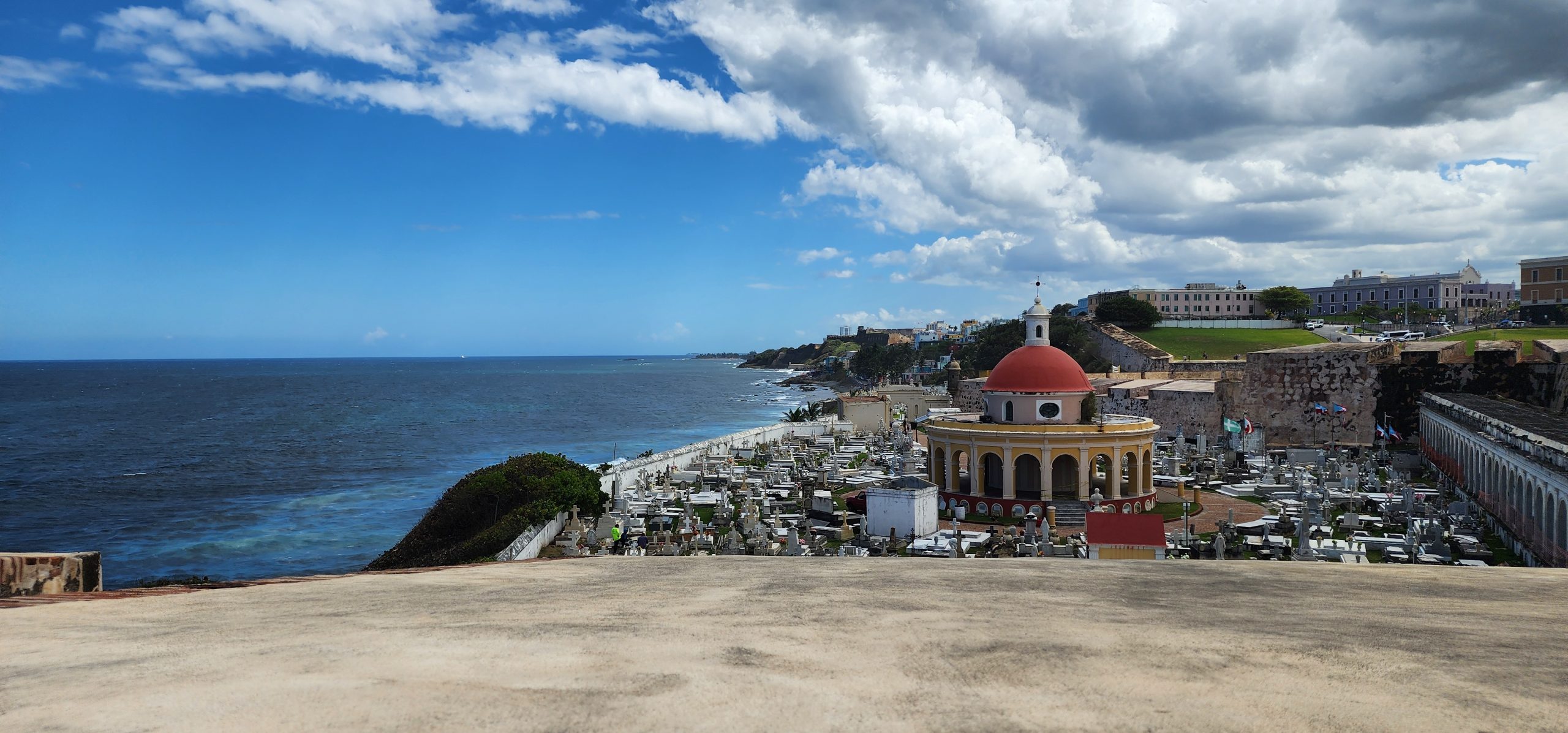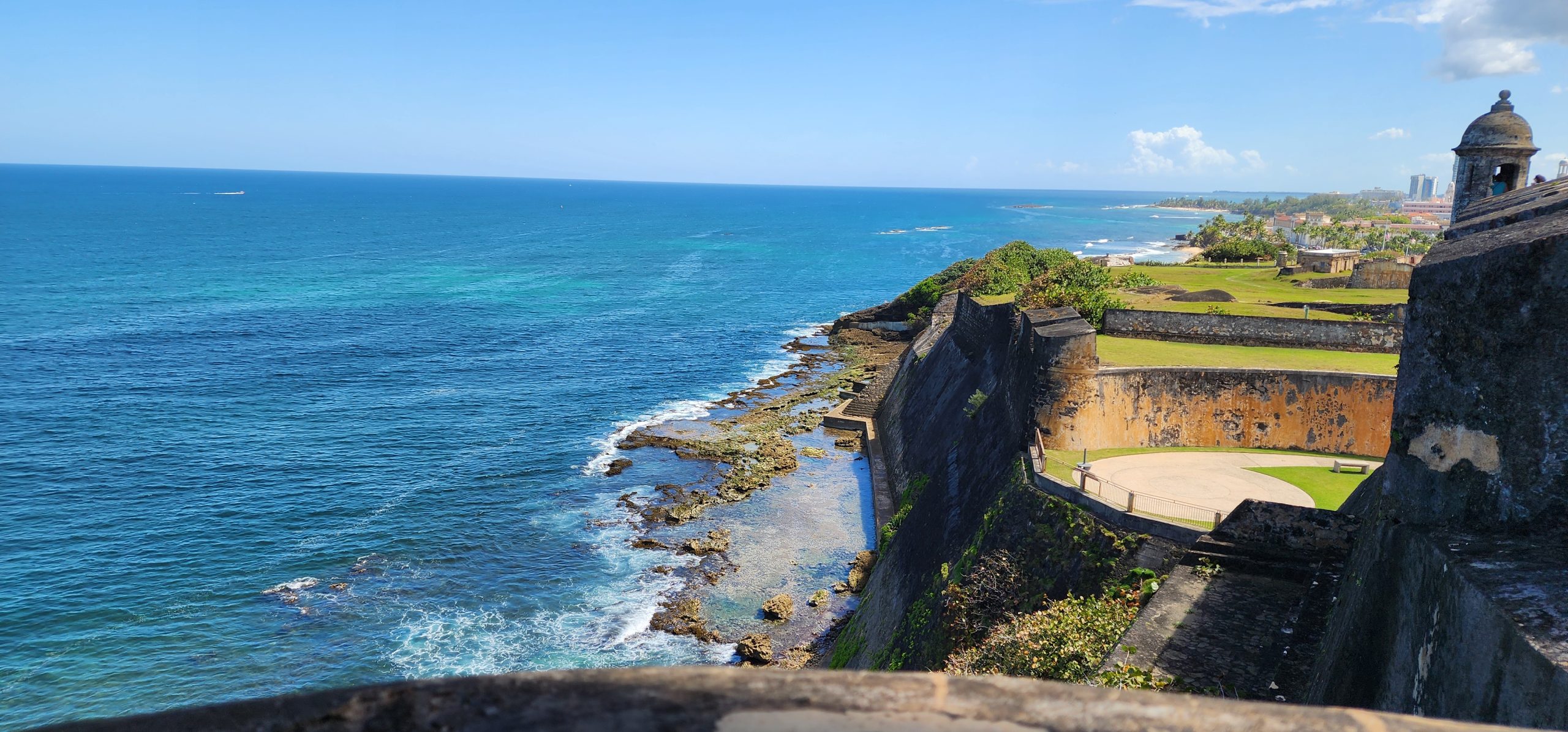 San Juan, Puerto Rico – Norwegian Gem Caribbean Cruise 2026 February 24, 2026February 24, 2026Tuesday, February 24, 2026We had a slow start this morning due to mistakenly changing our clocks last night. They actually need to be turned back an hour tonight.It was probably 10:00 am when we left the ship, an hour after we were permitted to go ashore. Gregg had done a quick search of things to see on foot from the San Juan port so he led the way. His first directional landmark was Walgreens. It was easy to locate since it is directly across the street from the port gate.He led us through town to Castillo San Cristobal, a San Juan National Historic Site. Thankfully, I read a tip to take my National Park Pass in case I wanted to use it in Puerto Rico. We were able to use it to get into this fort as well as another.Castillo San Cristobal reminds me of Castillo de San Marcos in St. Augustine, Florida. Though this fort is MUCH larger. and has many tunnels. It makes sense now, but I had never thought about this being a stratigic area to control for military and trade for the last 500 years. The two forts in San Juan also played important roles during World War I and II.From Castillo San Cristobal, we walked towards the fort at the mouth of the harbor, enjoying the ocean view down below as well as the colorful buildings on the opposite side of the road. Castillo San Felipe del Morro is surrounded by a huge grassy field. Between the wide open space and the constant wind coming off the ocean, it is the perfect place to fly kites. What a happy sight; I hadn’t seen kites in years.Spain began building Castillo San Felipe del Morro in 1539 and worked on it 250 years. Today it looks similar to the way it looked in 1790. It is smaller than its neighboring fort. Yet, it is my kind of fort – the interior courtyard is painted yellow and white.While touring the fort, we looked down and saw a fuel barge which had broken loose from its tug a few weeks ago and ran aground. It is living up to its name, Defiant. They are still working on getting it unlodged. Due to this, the harbor entrance is periodically blocked (I suspect during high tide.)Defiant caused us to be two hours late getting into port and we were just informed that we will be another hour late in leaving. That plan works well for me, thank you very much! I’m not ready to post this yet so I’ll have another hour of internet to work on it.After exploring this second fort, we headed downhill, through many narrow streets with sidewalks flanked by a building on one side and a one-way single lane street on the other. Many buildings are colorful so it is a festive, happy vibe. Some of the brick roads were painted blue.We went into a Roman Catholic Church, then visited the Roman Catholic Cathedral. We saw the decorated streets of Calle Fortaleza, walked through a famous pigeon park, and walked along the Paseo de la Princesa on our way back to the ship.Speaking of our ship, I thought it was a fair sized ship until this port. An MSC ship docked next to us. It has seven decks of balcony rooms. There is a Carnival ship on the other side of the MSC which also looks bigger than our ship.We returned to the ship hot, sweaty, yet content at 2:30. Staff greeted us with cold, wet washclothes and cold lemon water. Perfect!Tomorrow is a sea day. Thursday we will be at Norwegian’s private island, Great Stirrup Cay, where we plan to rent snorkeling vests and use masks and snorkels we brought to hunt for colorful fish. Friday is another sea day. Saturday morning we arrive home in Jacksonville.We’ve really enjoyed this cruise. I’m glad that Jacksonville’s port has this nice option now. It is my understanding that the Gem will port in Jacksonville from November to April. They will relocate somewhere else for the summer, returning again in November.I probably won’t write another post since we will eat, read, sleep, and repeat. Nothing newsworthy. Just the way we like it. Thank you so much for traveling vicariously with us! 2026 Caribbean Cruise from Jacksonville Travels CaribbeanChurchesTravels