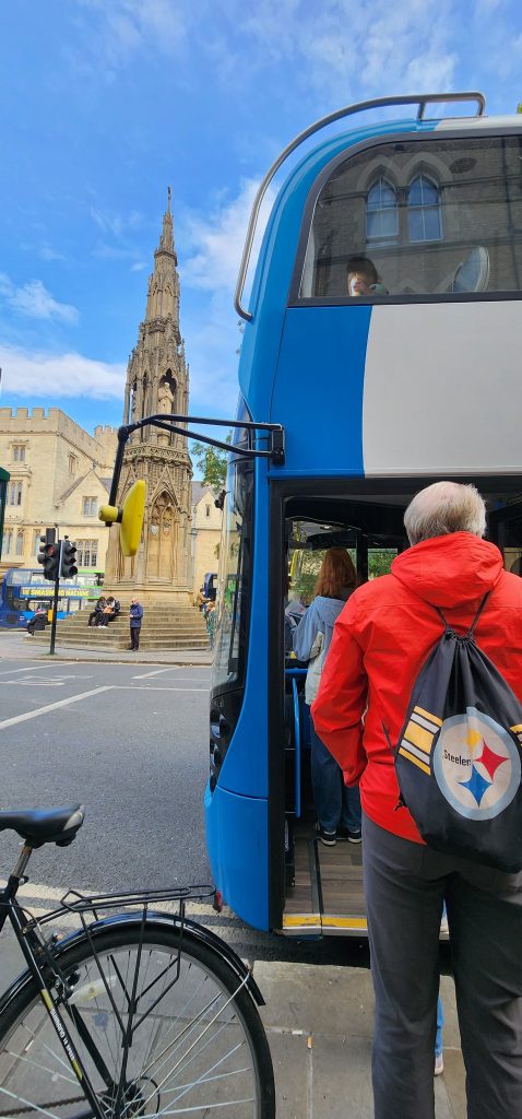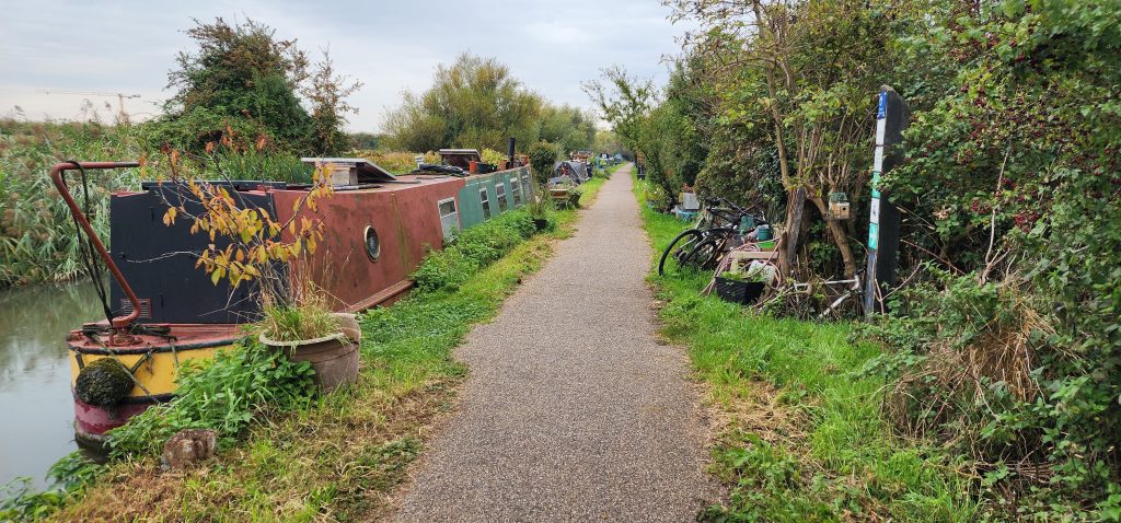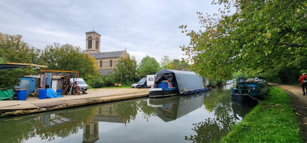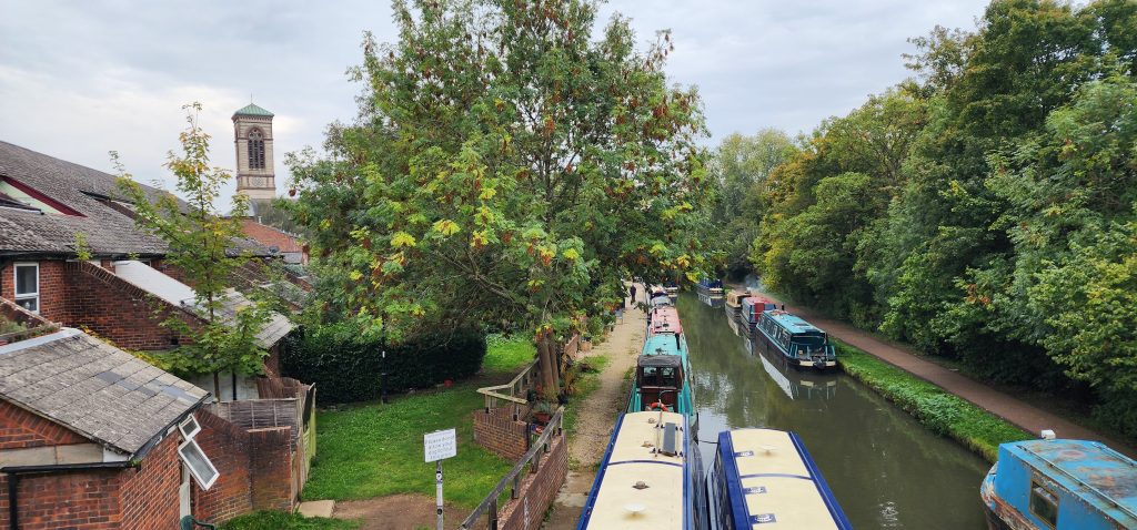 Walk to Oxford’s Christ Church Cathedral – Day 13 of 2025 England Pilgrimage October 1, 2025October 1, 2025Wednesday 10/1/2025Hello, October! You arrived in Kidlington with a surprise drizzle this morning. That couldn’t change our plans.Jennie and Steve’s home has a lovely and relaxing small back yard. It has wood fencing on the sides and a brick and rock wall along the back. Directly behind their brick wall is the manmade narrow canal and accompanying tow path. This section is called the Oxford Canal, part of The Thames Ring. This was part of the transport system related to the River Thames (yes, the same River Thames that goes through London and pronounced “tems”.)The canal is two to three plus narrowboats wide and it isn’t deep. The elevation of the land changes so there are locks along the way, allowing boats to go from one water level to another, one boat at a time. The boaters must get out of their boat and onto the towpath to hand operate the lock. They must also raise draw bridges along the canal by themselves, if needed.Before there were gas engines, horses would pull boats and barges along the canals, moving coal and other supplies. The canal system was mostly abandoned for commercial purposes once trains became common. Now they are used mostly for recreational purposes.There are designated places where narrowboats may moor. A few look to be permanently moored as they have mail boxes on the tow path and on the opposite side of the tow path they might have a table and chairs, a fire pit, a clothes line, birdfeeders, bikes, and more.Signs tell how long a boat can be docked at a time, sometimes just two days, other places longer. There are spigots for refilling water in the boats, areas to dump the toilet cartridge, and a few places have electricity hookups.Gregg and I binged on an Amazon show years ago called Cruising the Cut. It looks like the show is ongoing and now on YouTube. It is about a man who sold his house and bought a narrowboat. He records his slow-paced life living on a narrowboat (think, narrow but long houseboat that goes 3 miles per hour max.)All that to say, this morning Gregg and I walked the tow path 7.5 miles from where we are staying in Kidlington into Oxford. We took our time and got there in three-ish hours. I stopped often to take photos (no surprise there) so it took more time than normal. We didn’t get much rain, only a few drips on and off. It was very relaxing. I loved listening to the birds, especially the European Robins, though they were ellusive and out of sight.Christ Church Cathedral had a communion service at 1:05 so we headed over there. To get into the Cathedral, you must first get into Christ Church College. They are very strict as to whom may enter. You can pay to tour the College and cathedral. But, you can get in free if you are going for a service or to pray. The gate guard seemed skeptical that we really wanted to pray for half an hour since we were 35 minutes early for the service. Silly Americans! He let us through anyways with the admonition that this isn’t permission to look around and tour the Cathedral. I assured him that we had already been inside the Cathedral.The Communion service was not sung. Since it was a small mid-day service, it was held in The Remembrance Chapel, a small side chapel. There may have been a dozen of us. Reverend Charlie Kerr officiated. He is the new Vicar for the Cathedral’s Centre for Christian Pilgrimage. We had a lovely conversation with him after the service.This service was live-streamed which reminded me to look online. Though it was streamed, the service today was not recorded. Here is a choral Evensong service at Christ Church Cathedral similar to the one we attended last Friday evening (when Magdalen College Chapel didn’t have theirs due to the students being on break.)For lunch afterwards, we walked around and finally decided on pizza at a sourdough pizza restaurant. One of their specials for the week was a fresh fig and goat cheese pizza. Yes, please! We shared one and I thoroughly enjoyed it!Though the sun was finally out and the sky was becoming blue, we were ready to call it a day. We found the bus stop and caught the bus that drops you off almost at the (tiny) neighborhood entrance.We’re looking at walking options for tomorrow. The weather predictions say tomorrow is the last chance of a nice day before storms come in. 2025 England Pilgrimage - Part 2 Travels ChurchesGreat BritainTravels